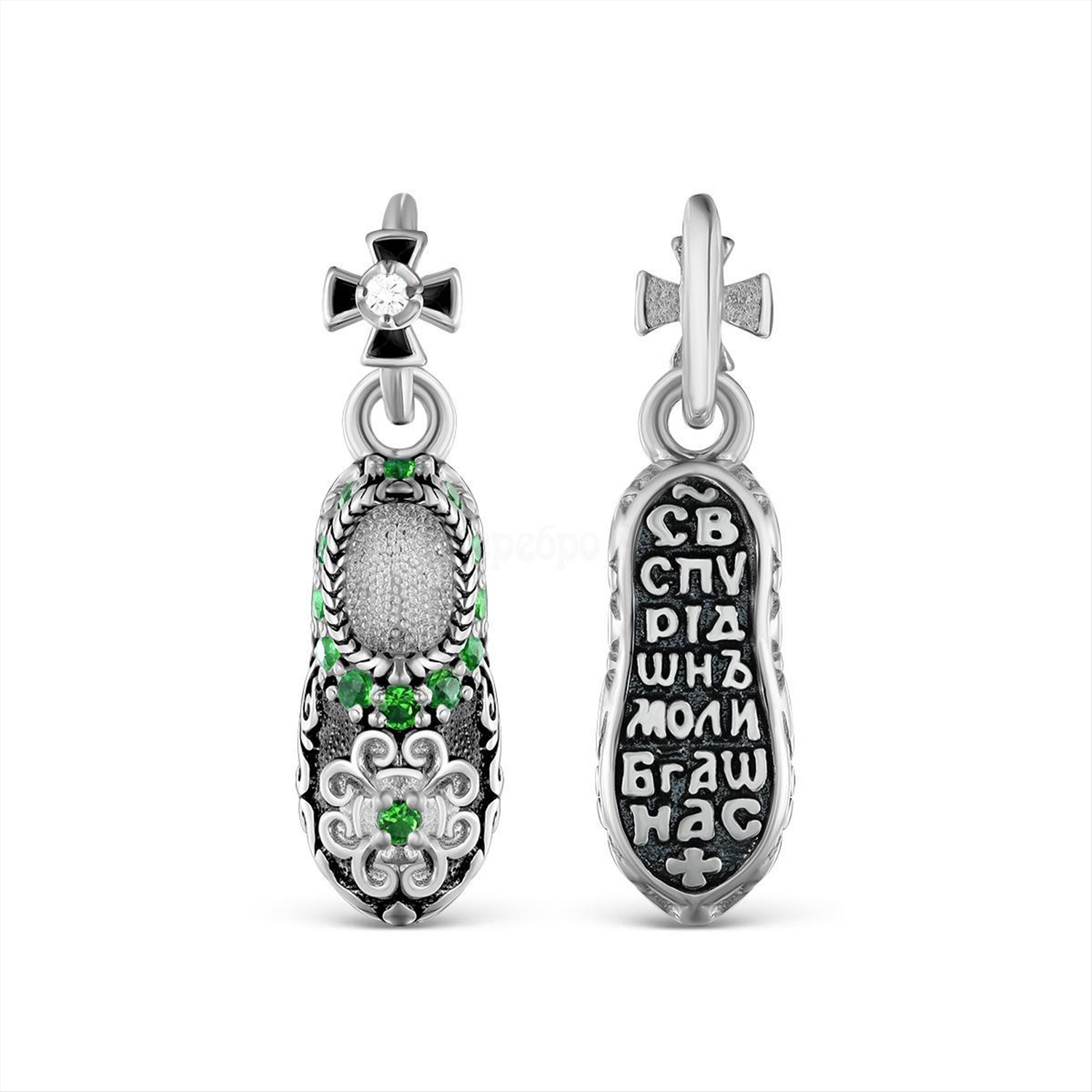 Подвеска из чернёного серебра с фианитами - тапочка св.Спиридона 925 пробы 3-608ч233