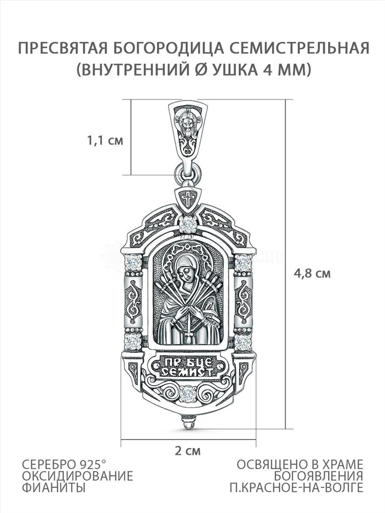 Подвеска православная из чернёного серебра с фианитами - Семистрельная Богородица 4,8 см П-284-1 2 фото