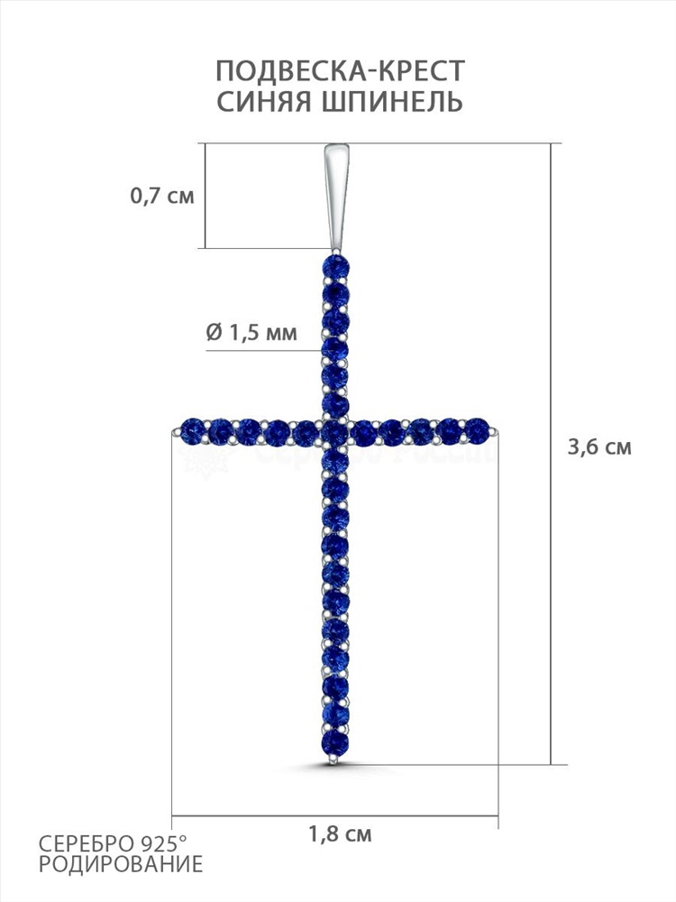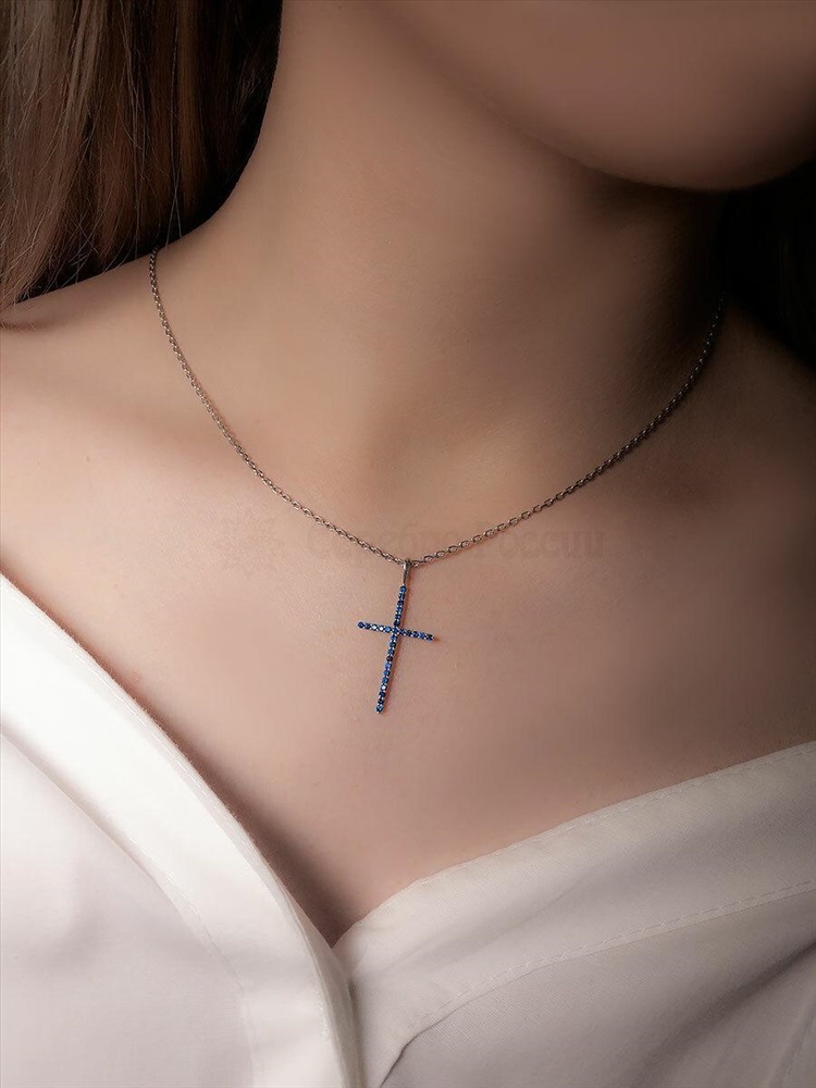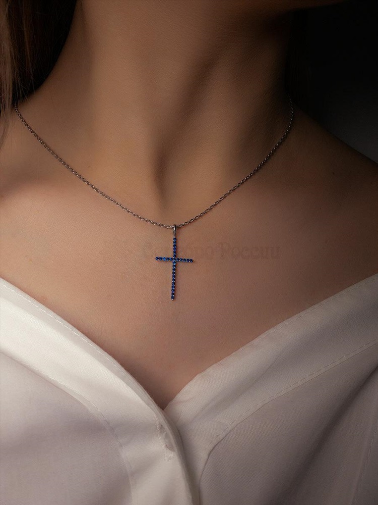Подвеска из серебра с синей шпинелью родированная - Крест 925 пробы п-035р608 4 фото