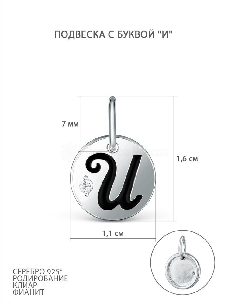 Подвеска из родированного серебра с покрытием клиар и фианитом - И 925 пробы 3639 Ир 2 фото