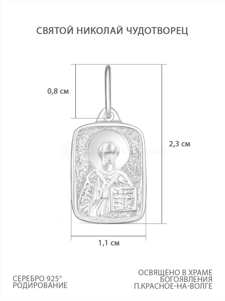 Подвеска религиозная из родированного серебра - святой Николай Чудотворец 925 пробы К3-518р 4 фото
