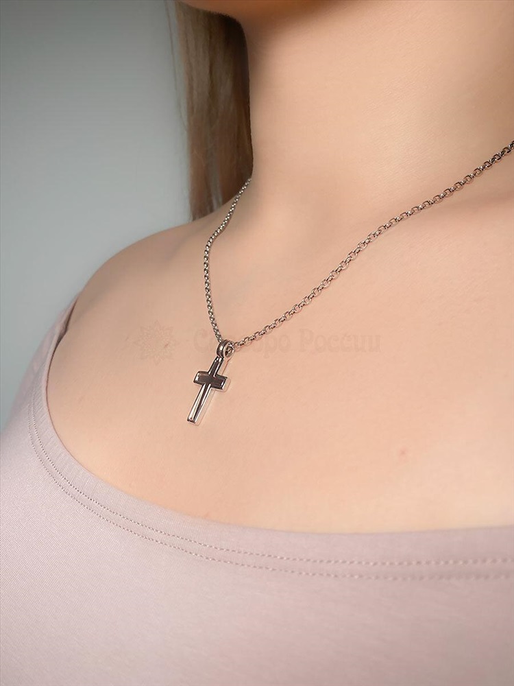 Крест из серебра с фианитами родированный 925 пробы К3-552р200