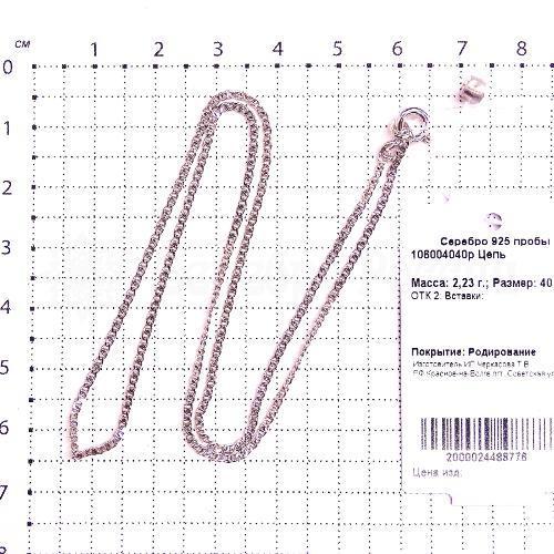 Цепь из серебра родированная - Тройной ромб, 65 см ТРГр-40р65,0 2 фото