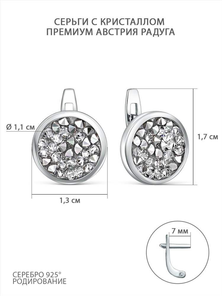Серьги из серебра с кристаллом Премиум Австрия Бесцветный родированные С-004-010001GAL 2 фото