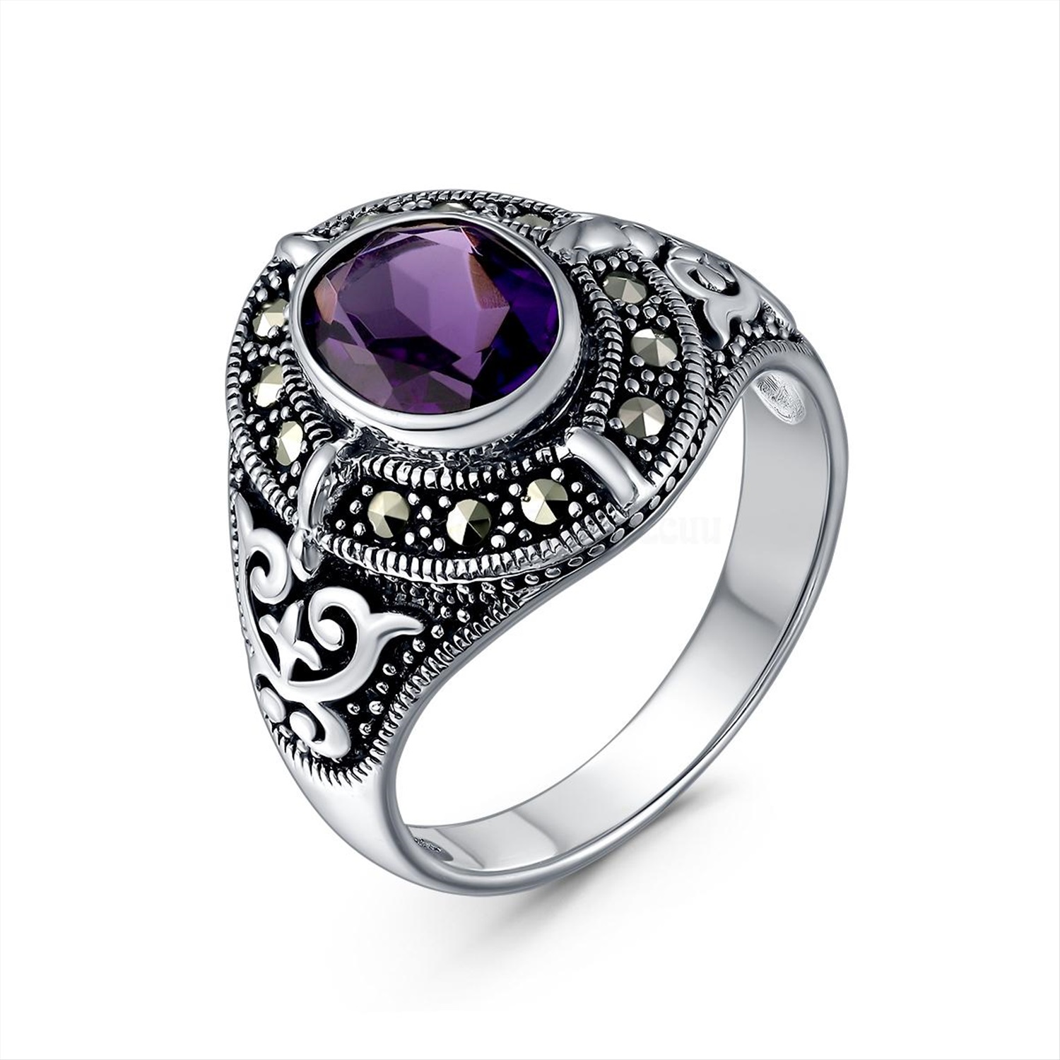 Кольцо из чернёного серебра с натуральным аметистом и марказитами 925 пробы HR1059-AM 4 фото