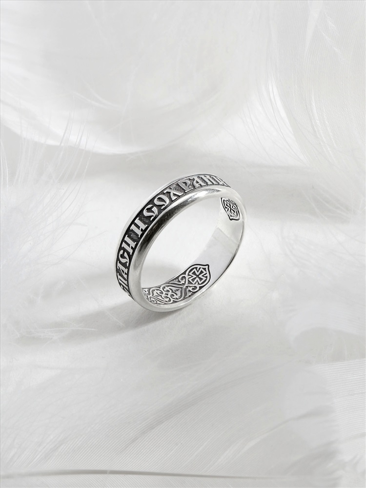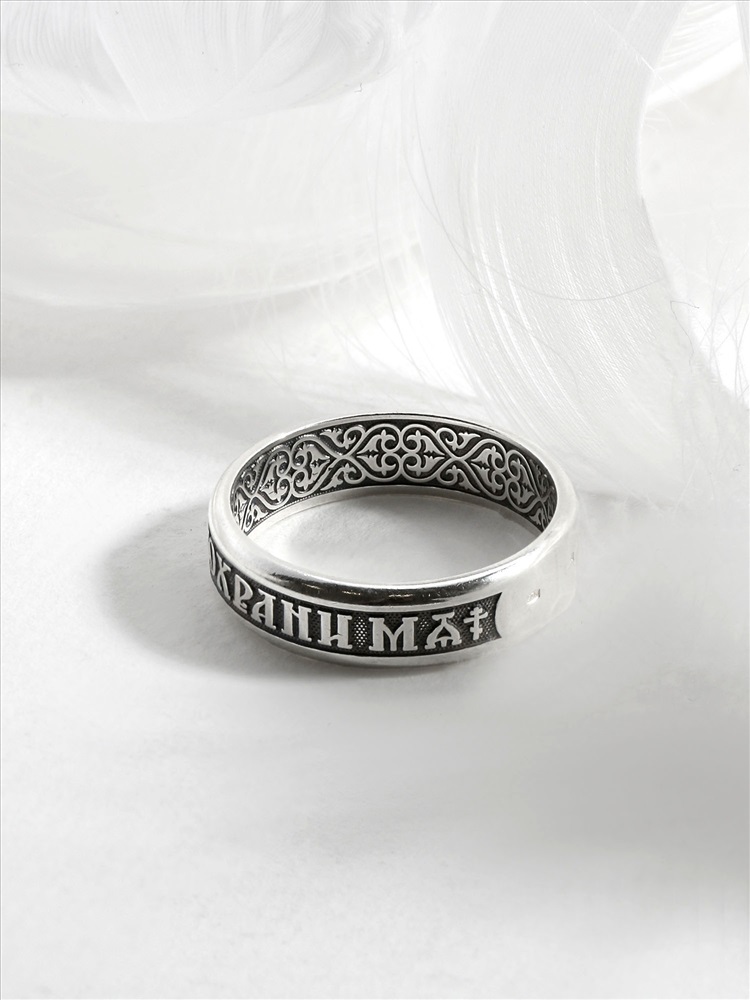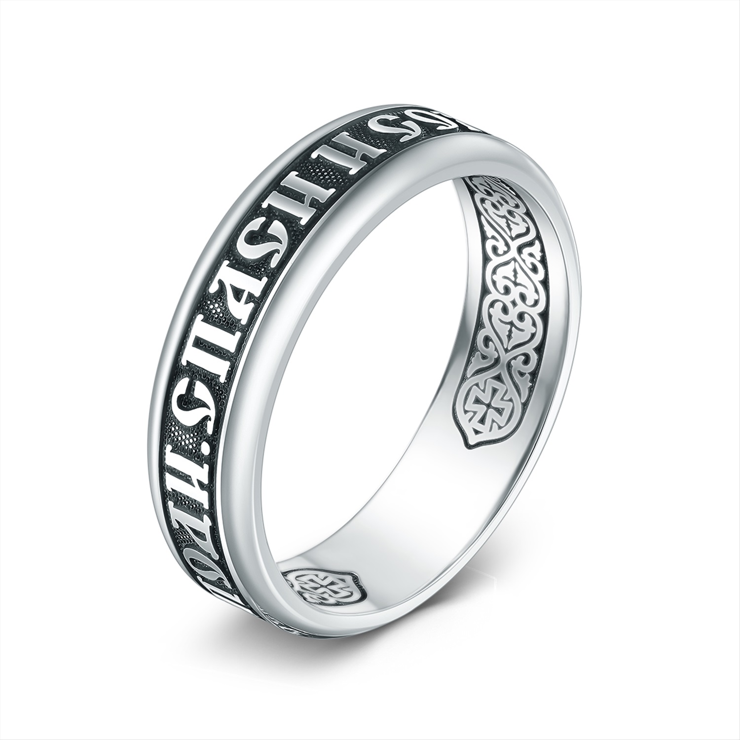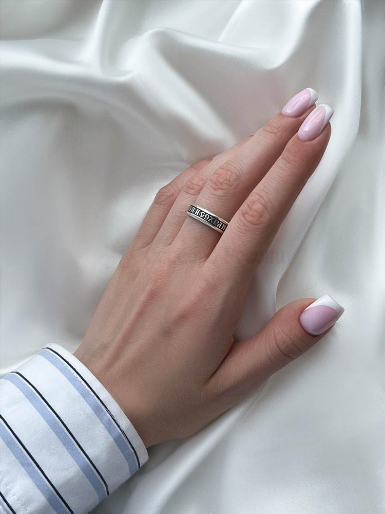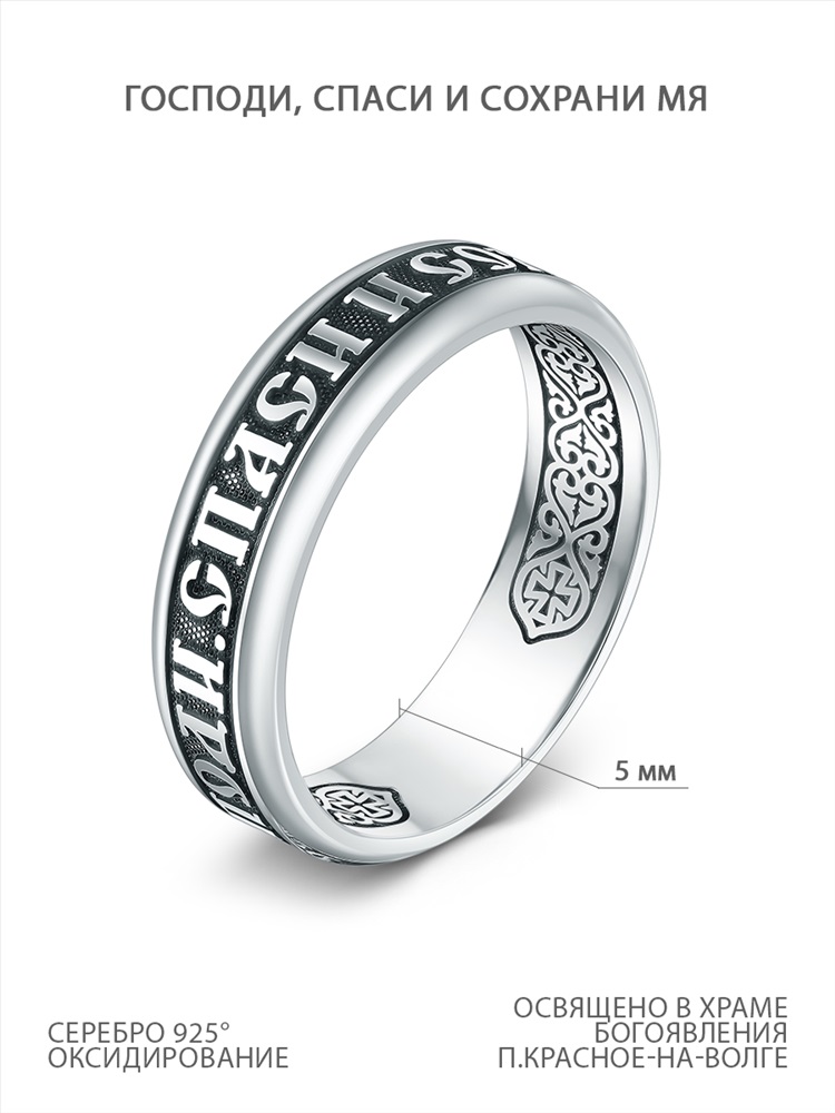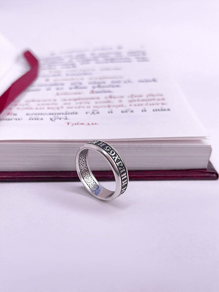 Кольцо из чернёного серебра - Господи, спаси и сохрани мя 925 пробы К-112 6 фото