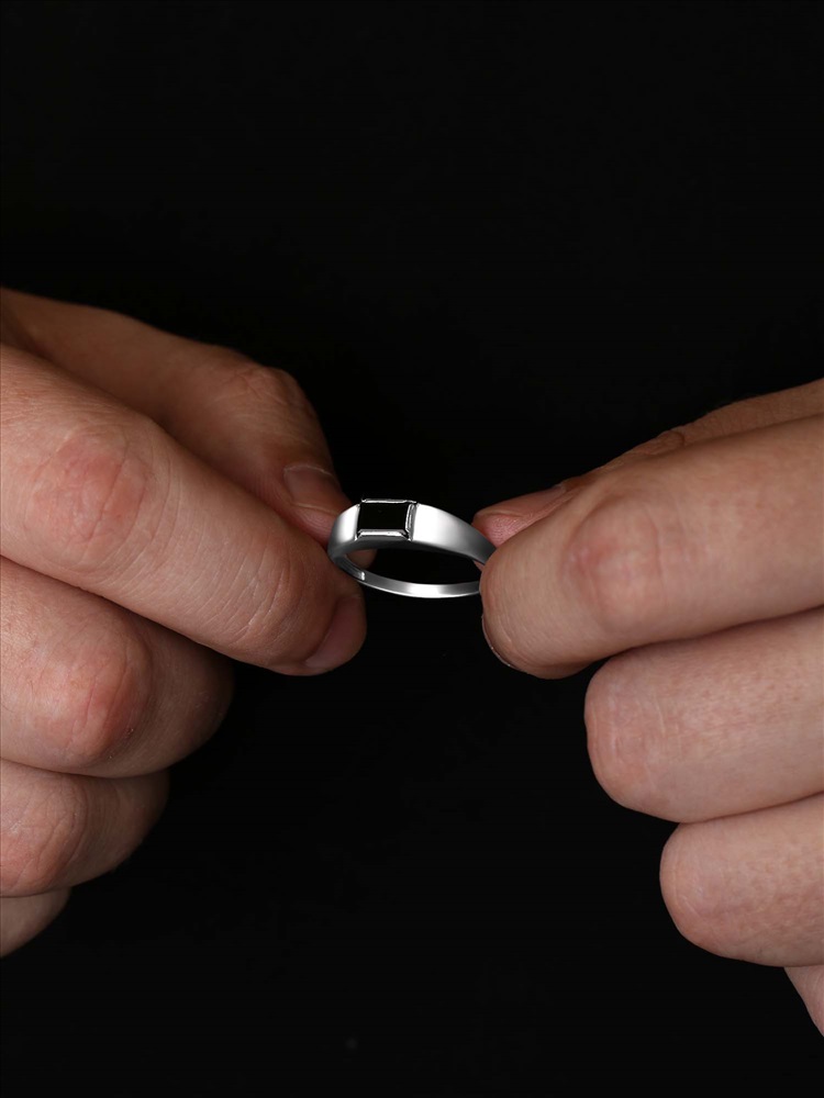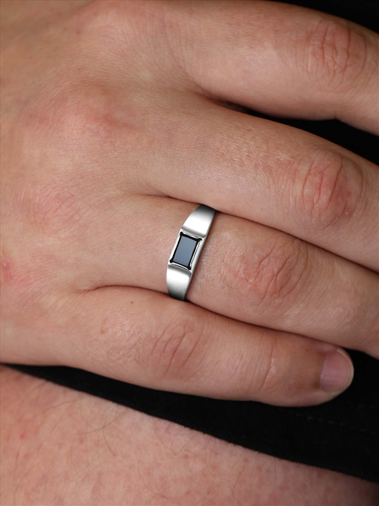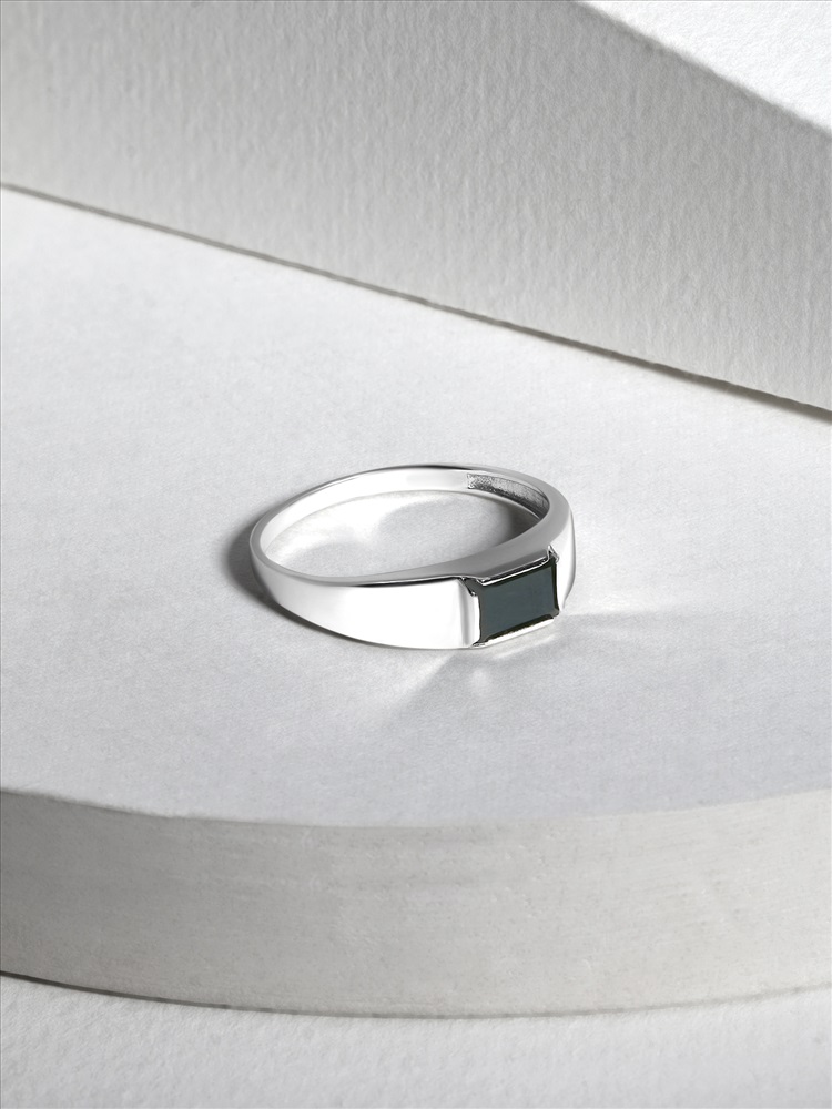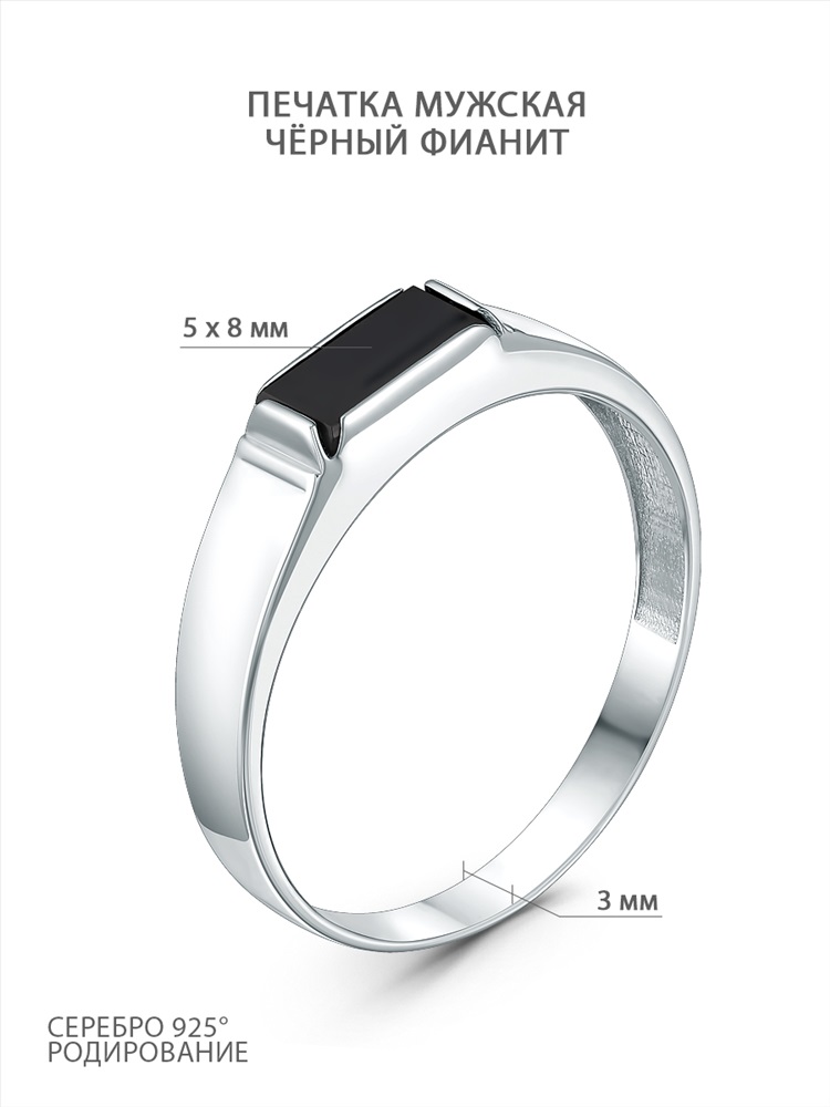 Печатка из серебра с фианитом родированная 925 пробы Пч-205р 8 фото