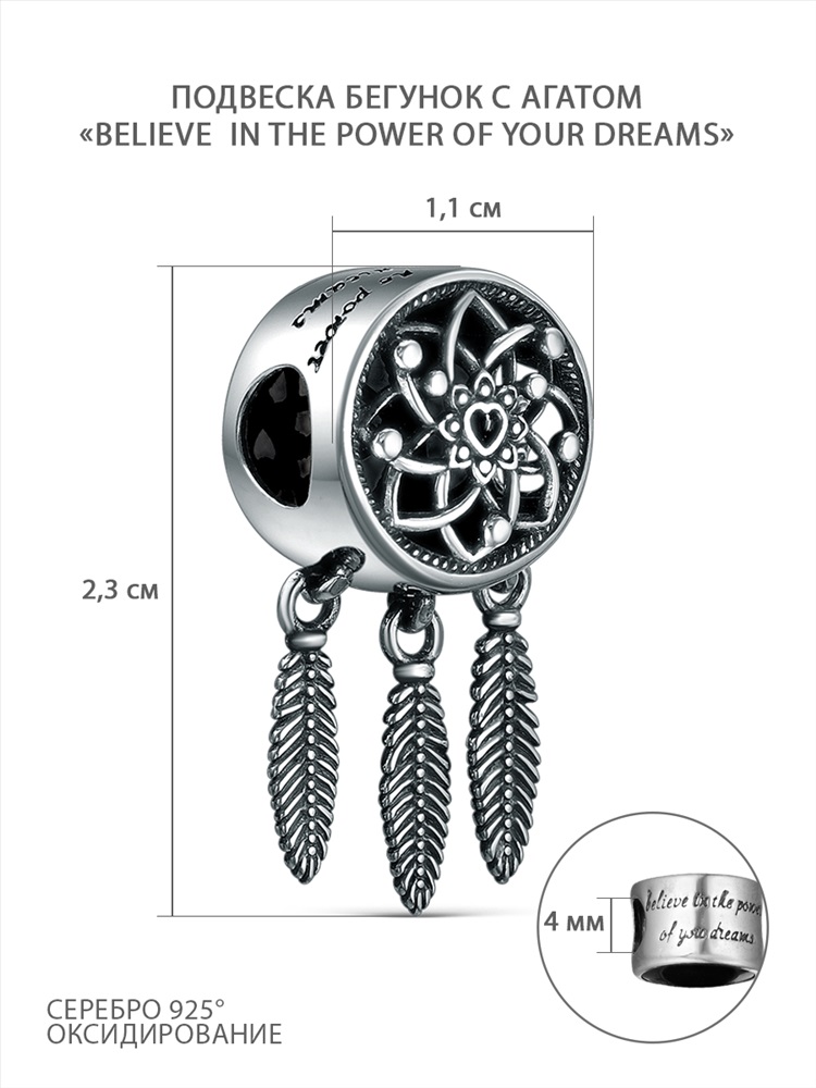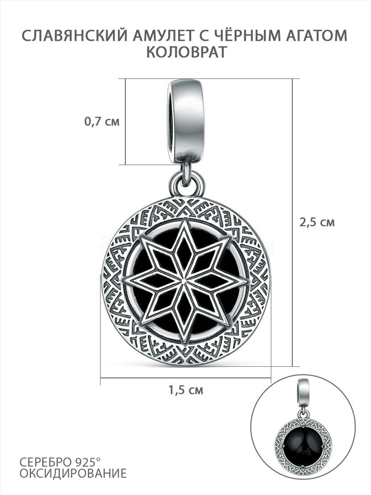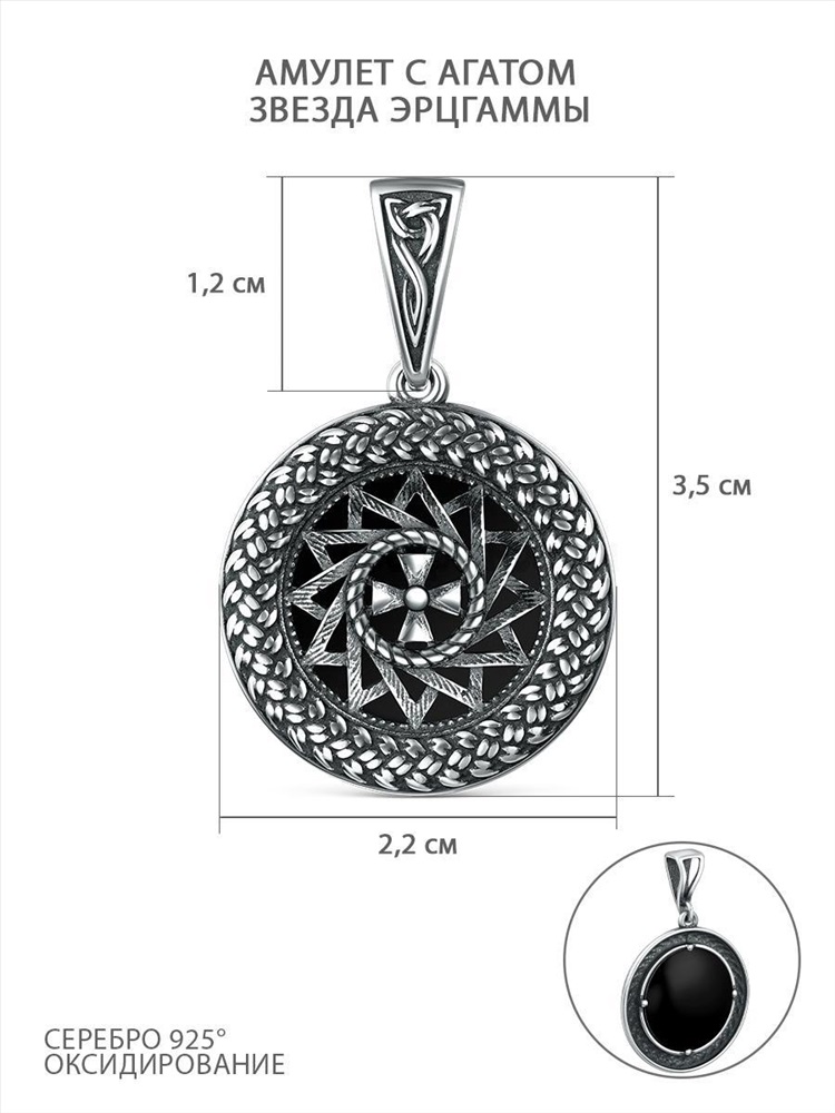 Подвеска из чернёного серебра с чёрным агатом - Алатырь (Это символ гармонии. Он очищает и наполняет человека солнечной силой. Помогает встретить человека, предназначенного вам судьбой. Алатырь - цент 5102004 Алатырь 2 фото
