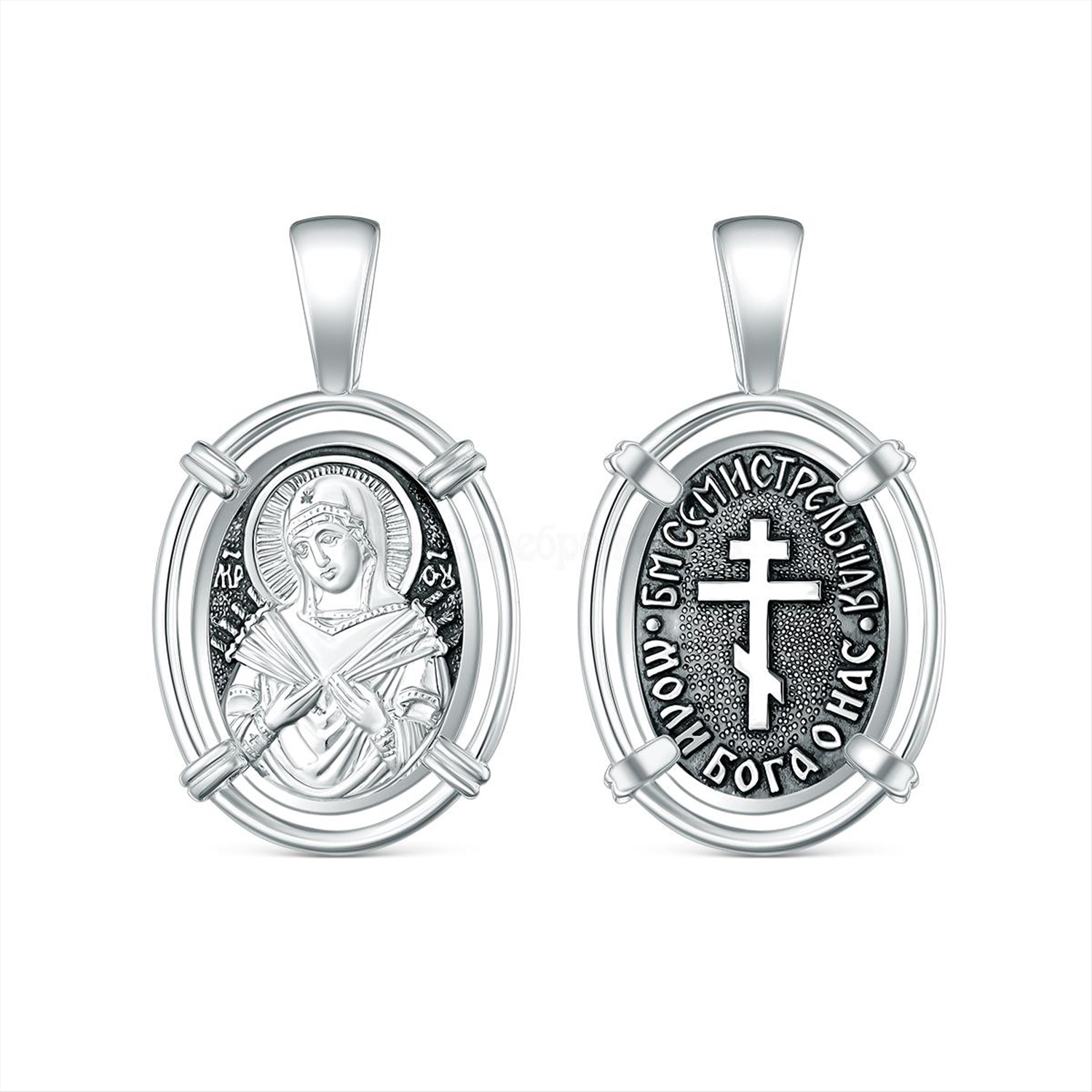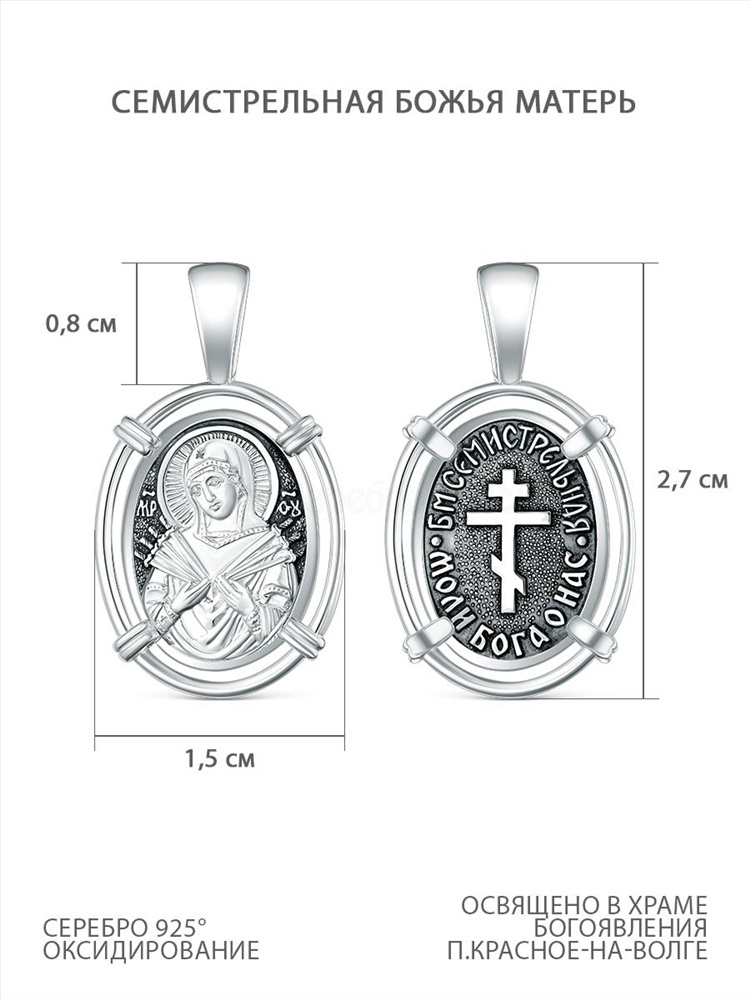 Икона нательная из чернёного серебра - Семистрельная Божья Матерь 925 пробы К3-582чч 4 фото