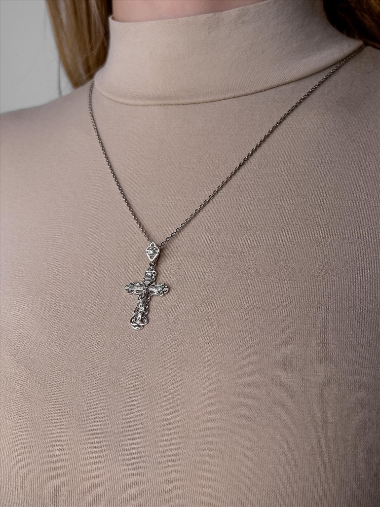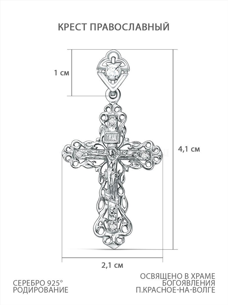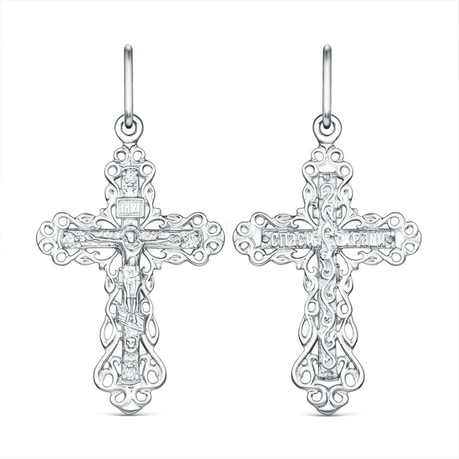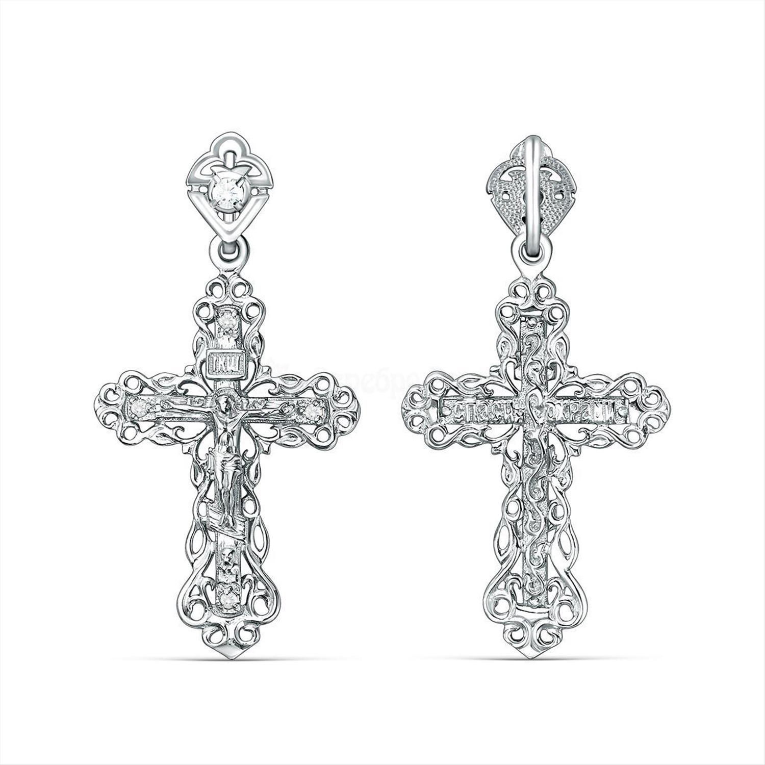 Крест нательный из серебра с фианитами родированный 925 пробы 3-459р 2 фото