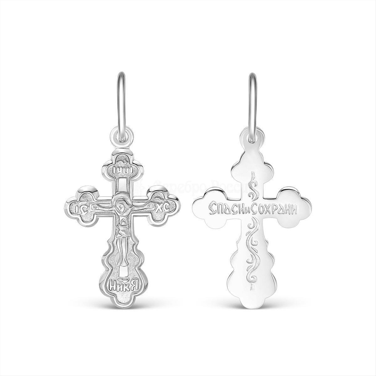 Крест правосланый из серебра с фианитами родированный - Спаси и сохрани, 4 см 925 пробы К3-251р 200 8 фото