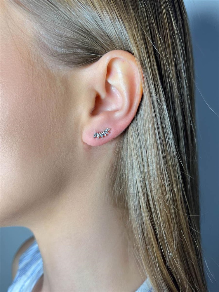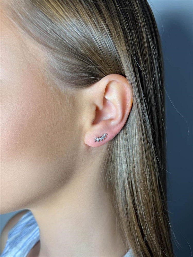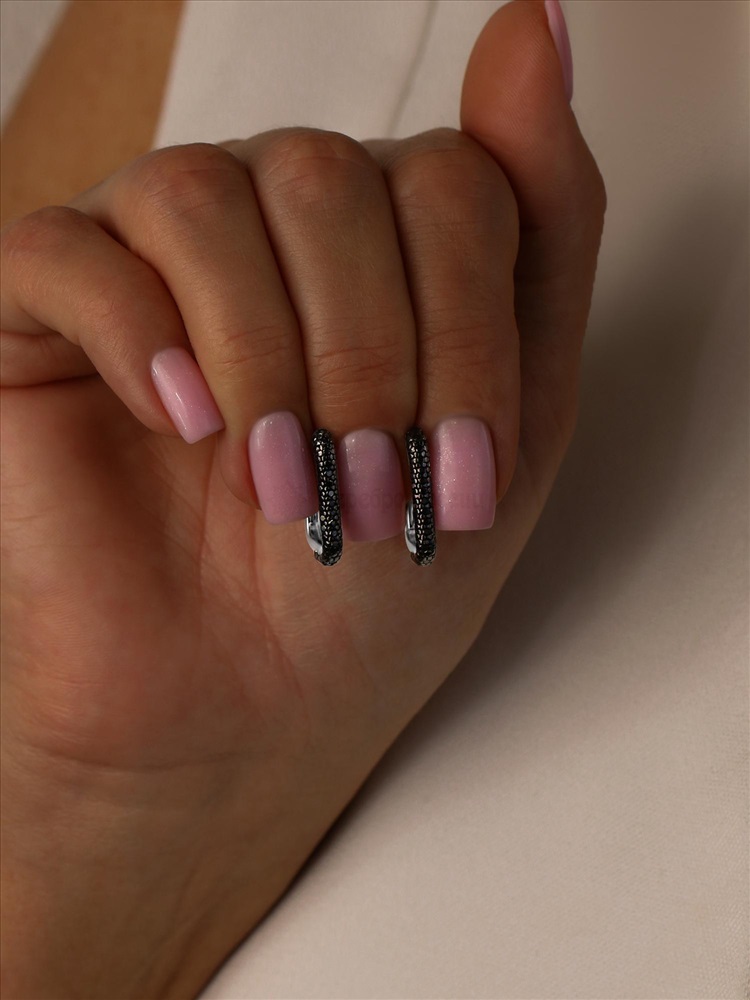 Серьга-пусет из серебра с фианитом родированная 925 пробы С-3114-1-Р 2 фото