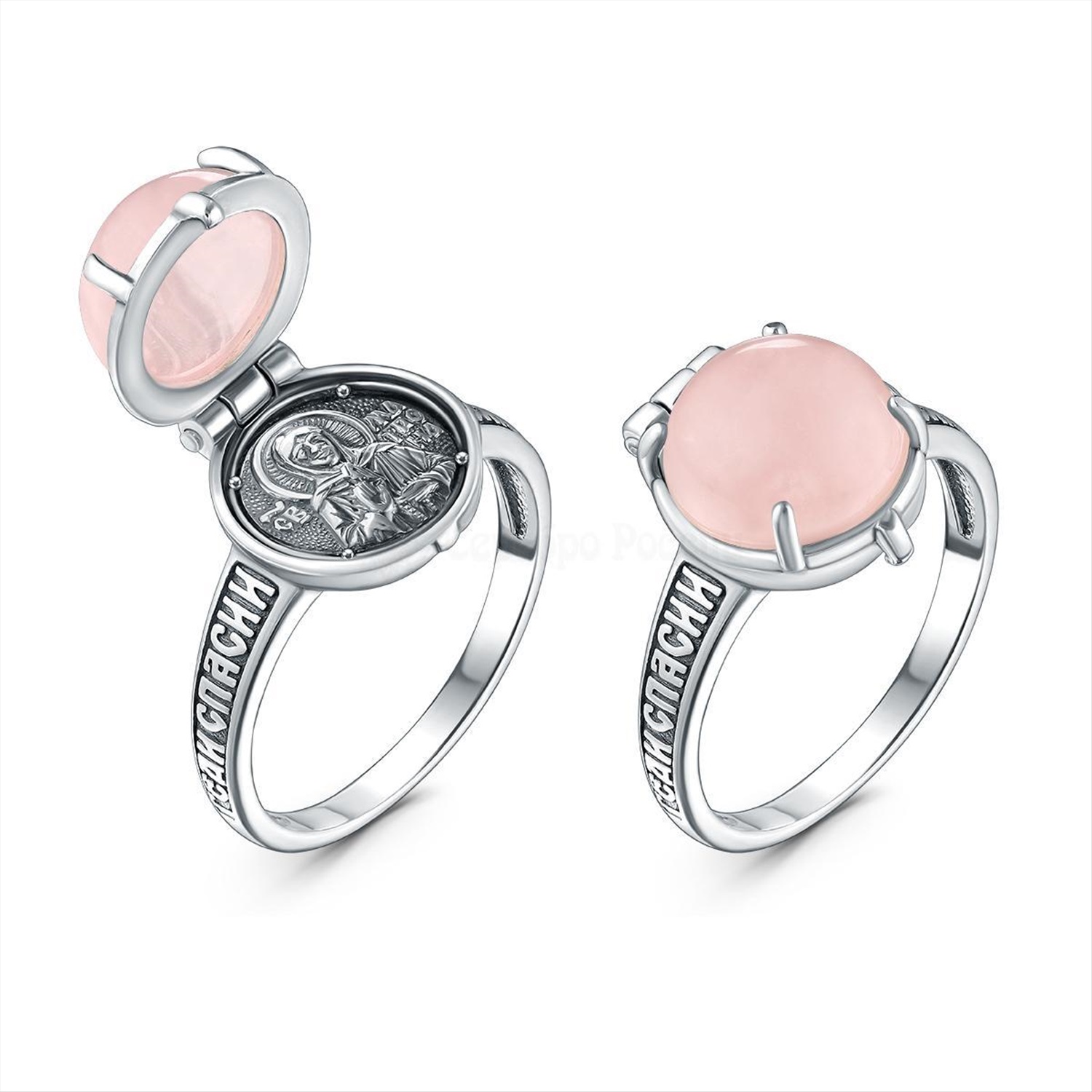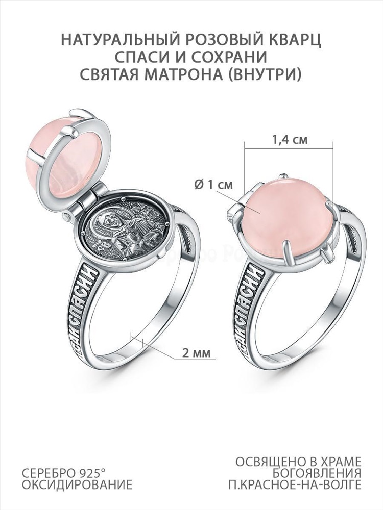 Кольцо из чернёного серебра с натуральным розовым кварцем - Спаси и сохрани, святая Матрона (внутри) 925 пробы К-138-041ч421 2 фото