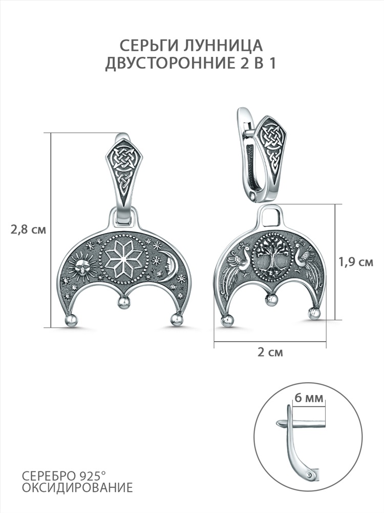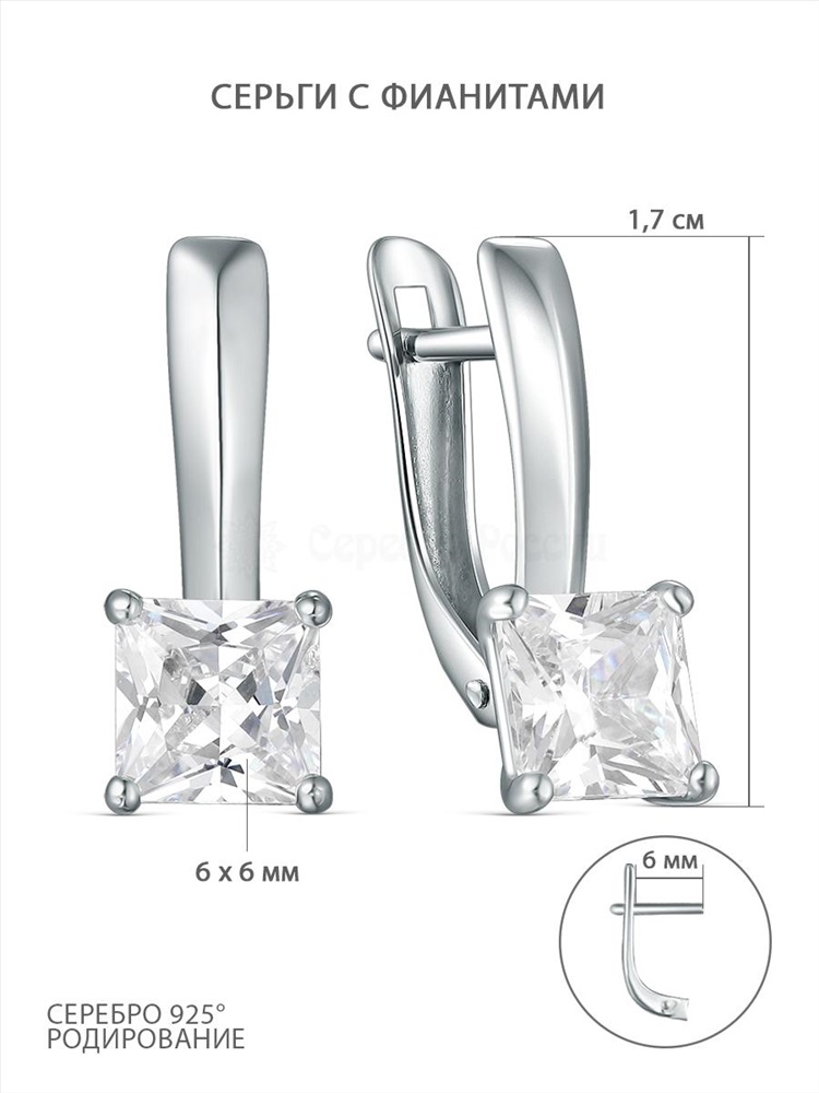 Серьги из серебра с фианитами родированные S2139951010 4 фото