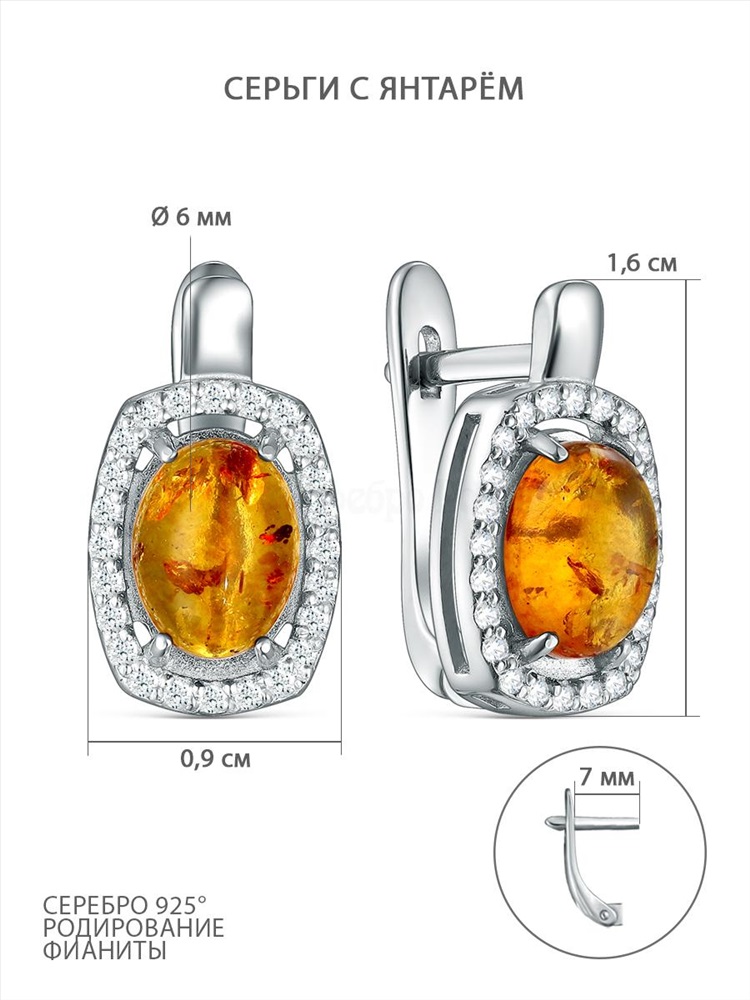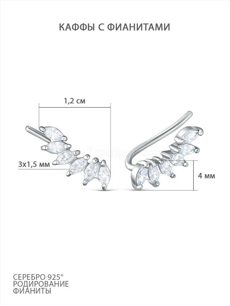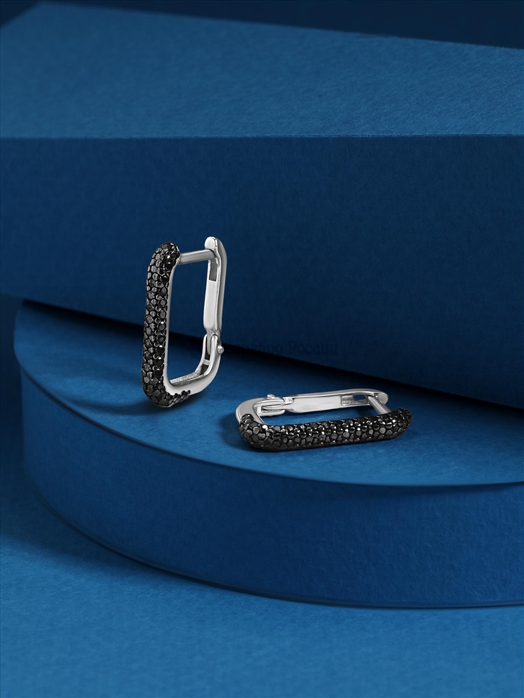 Серьги из серебра с фианитами родированные 925 пробы С-3475рс200 2 фото