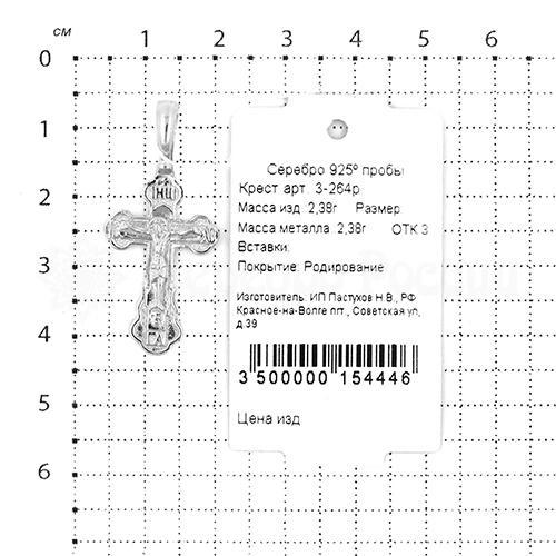 Крест из серебра родированный 925 пробы 3-264р 2 фото