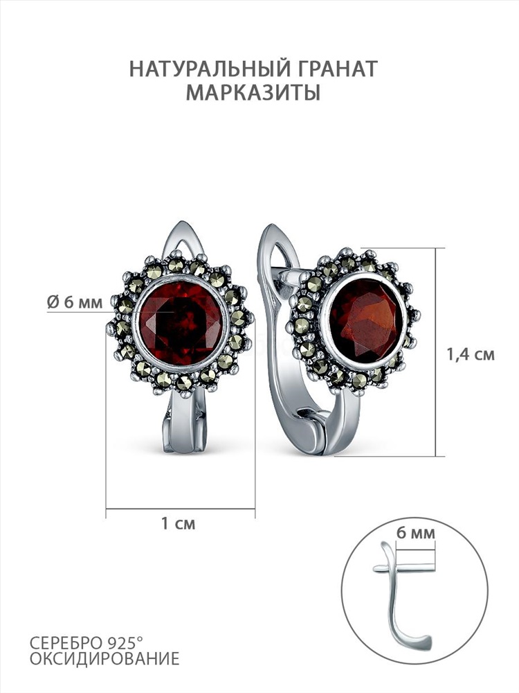 Серьги из чернёного серебра с натуральным гранатом и марказитами 925 пробы HE1754-AFG-LK 4 фото