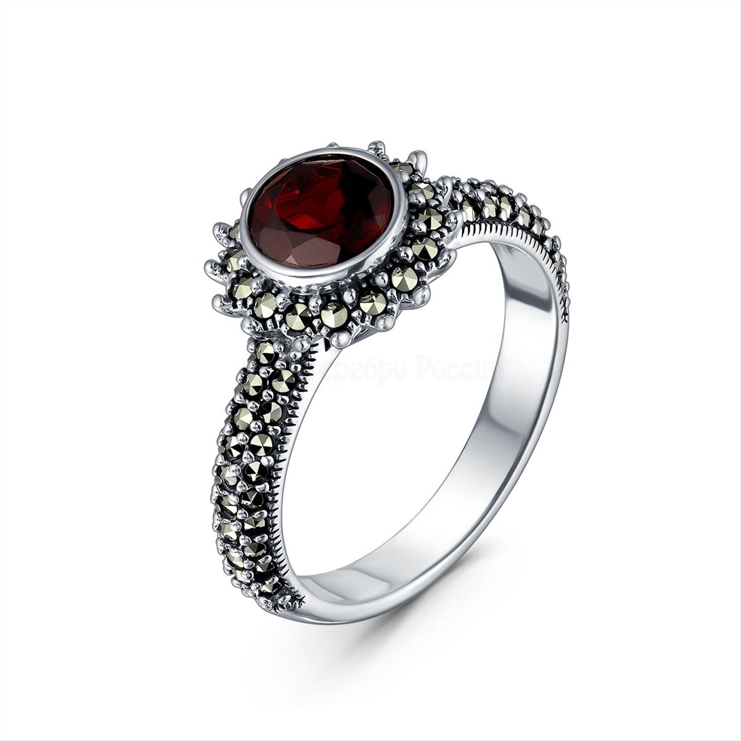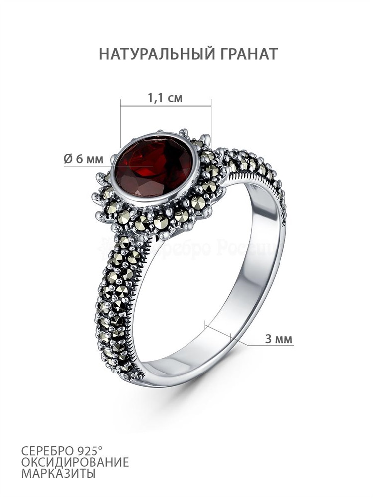 Кольцо из чернёного серебра с натуральным гранатом и марказитами 925 пробы HR1920-AFG 4 фото
