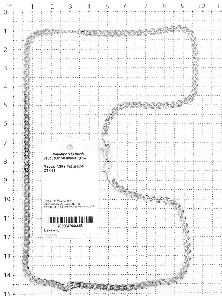 Цепь из серебра родированная - Якорь Гуччи, 50 см 130104050р якорь гуччи 2 фото