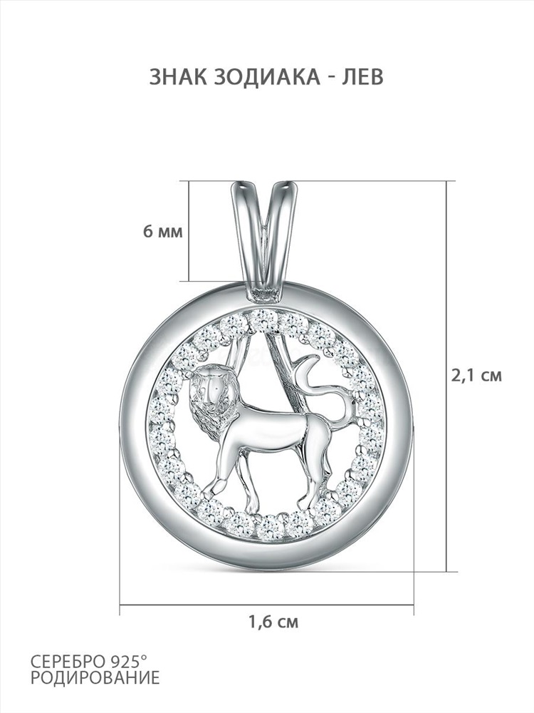 Подвеска из серебра с фианитами родированная - Лев 925 пробы П-2725-Р 2 фото