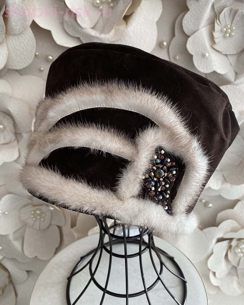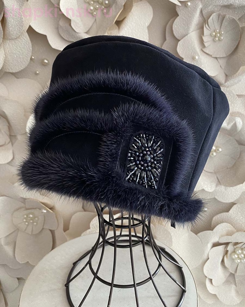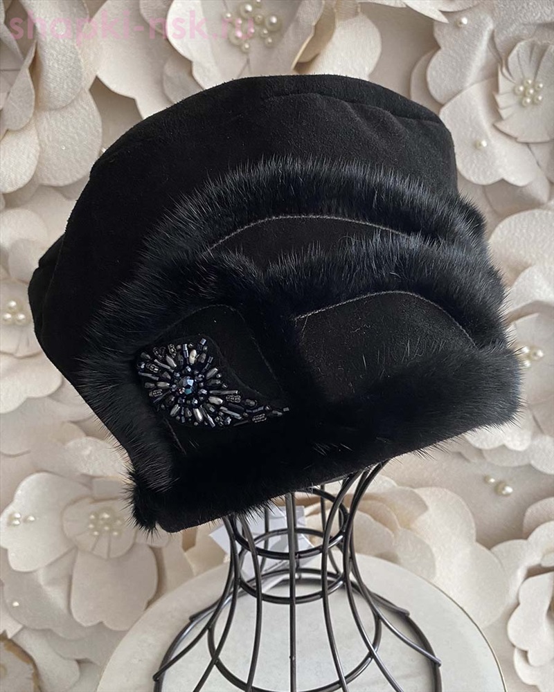 Павлина замша мех.норка Берет женский флис (56-58) 4 фото