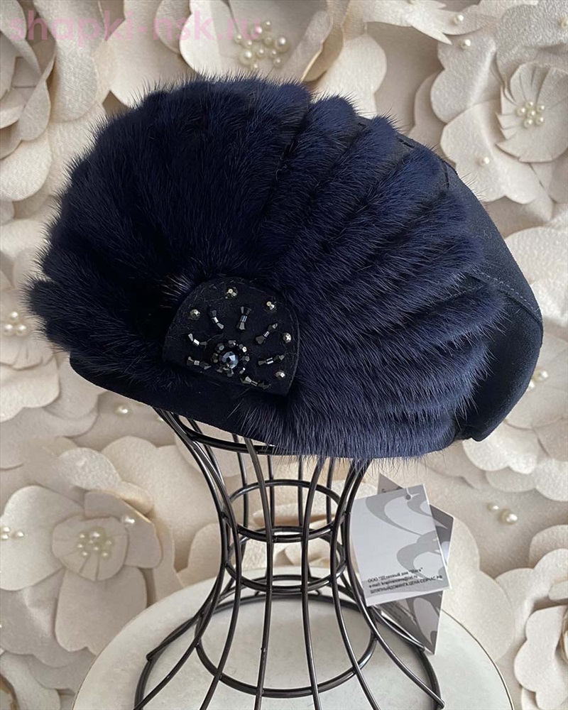 Вера замша мех.норка Берет женский флис (56-58) 3 фото
