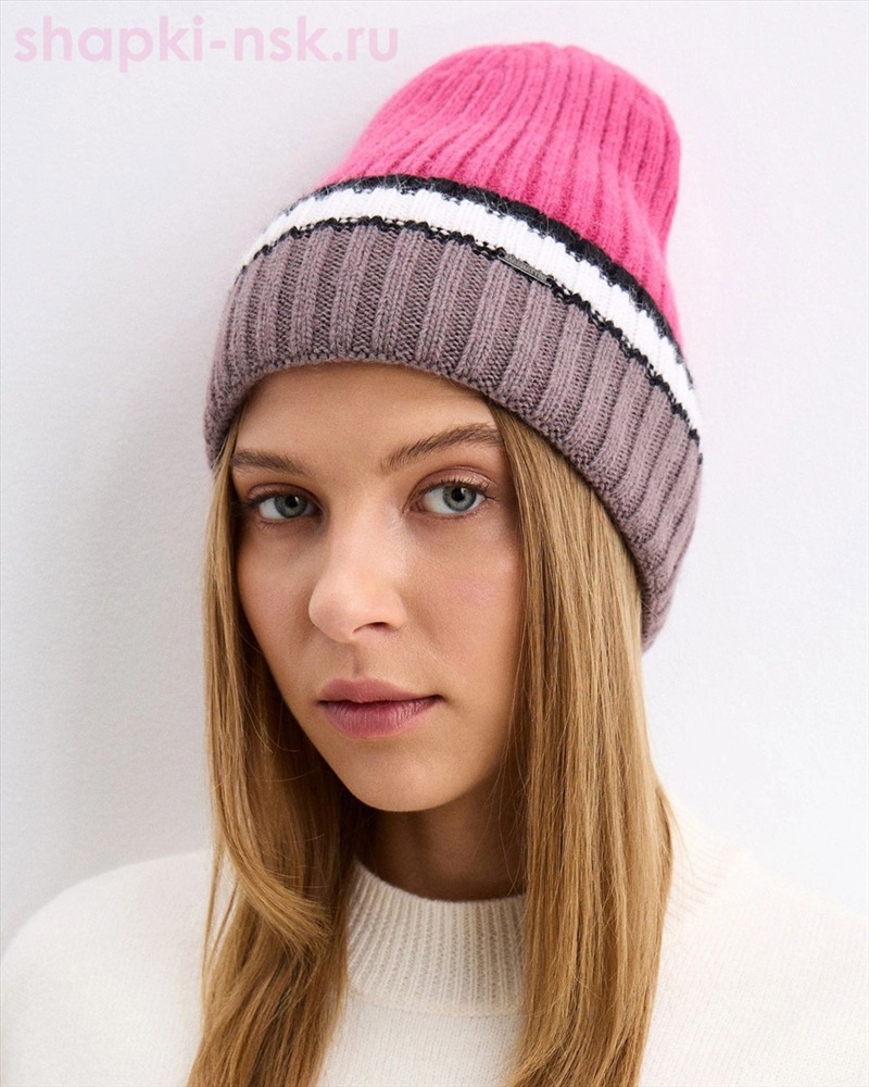 Отворот мохер мульти полоска термо Шапка флис (56-58)