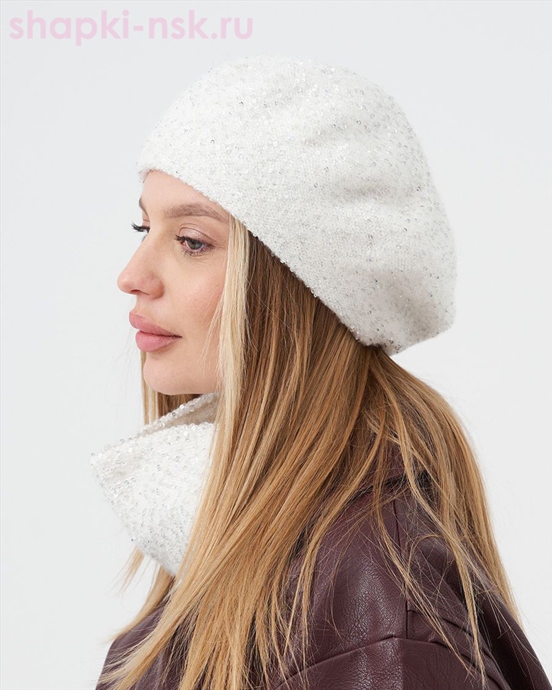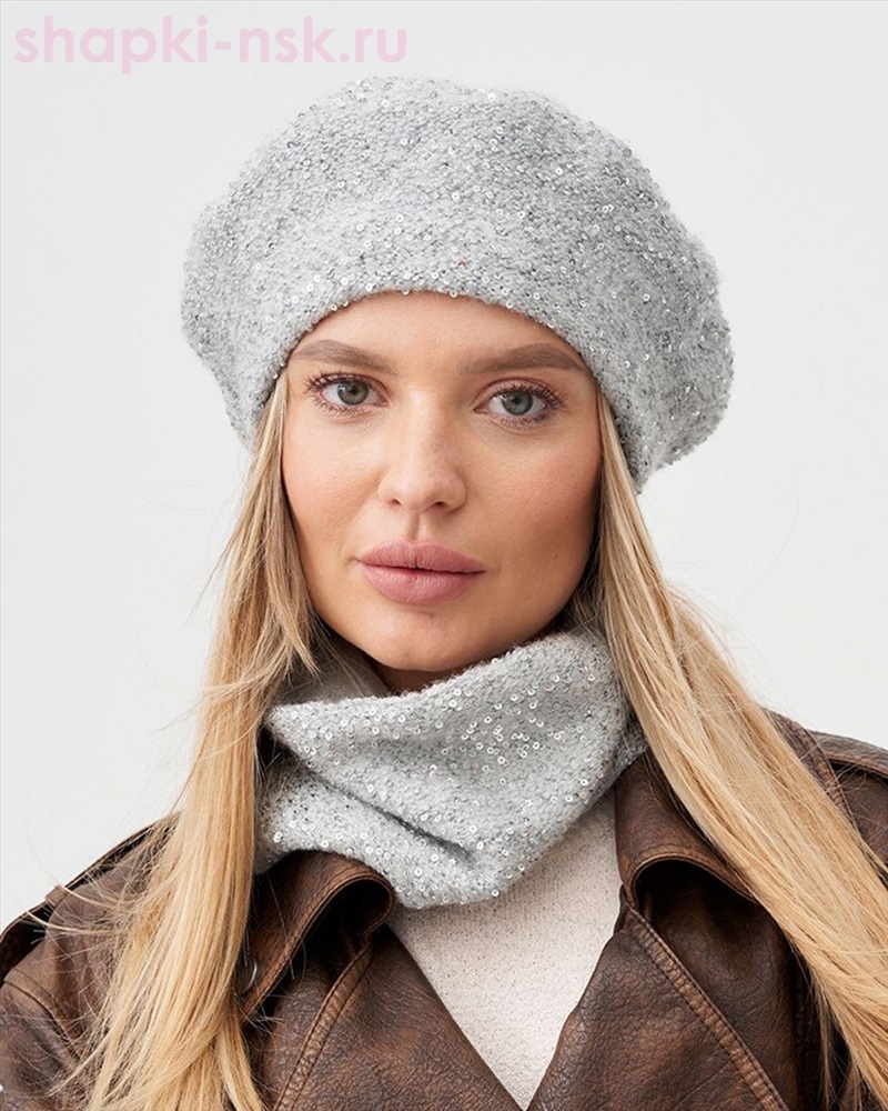 Эльза пряжа Альпака пайетки Берет (56-58) 2 фото