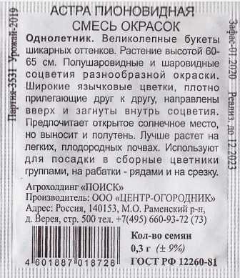 Астра  Пионовидная смесь (Код: 88141)