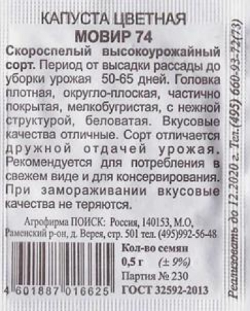 Капуста цветная  Мовир 74 ч/б (Код: 85580)