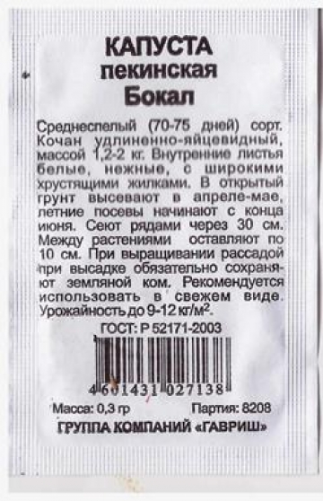 Капуста  пекинская Бокал ч/б (Код: 85976)