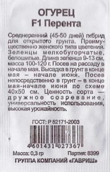 Огурец  Перента F1 ч/б (Код: 82763)