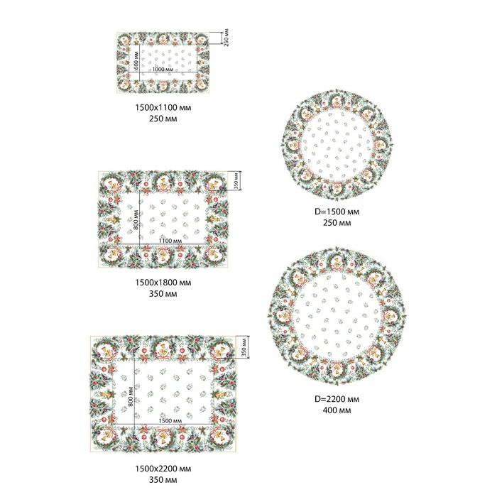Размер : 150х220 +/-3см, салфетки 12 шт, d=150см, d=220 см