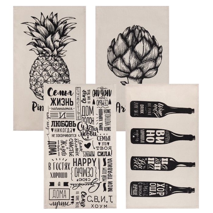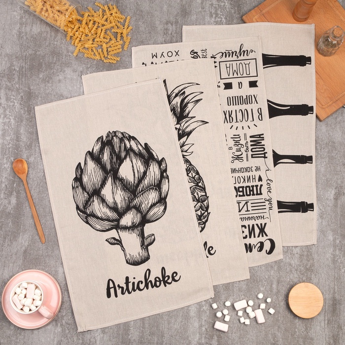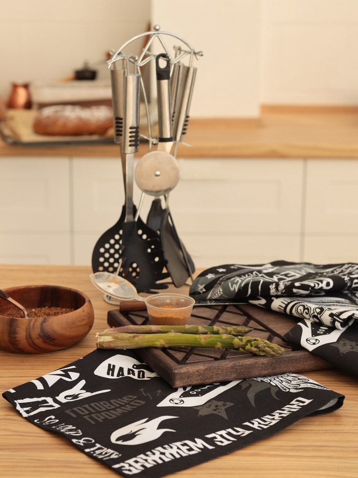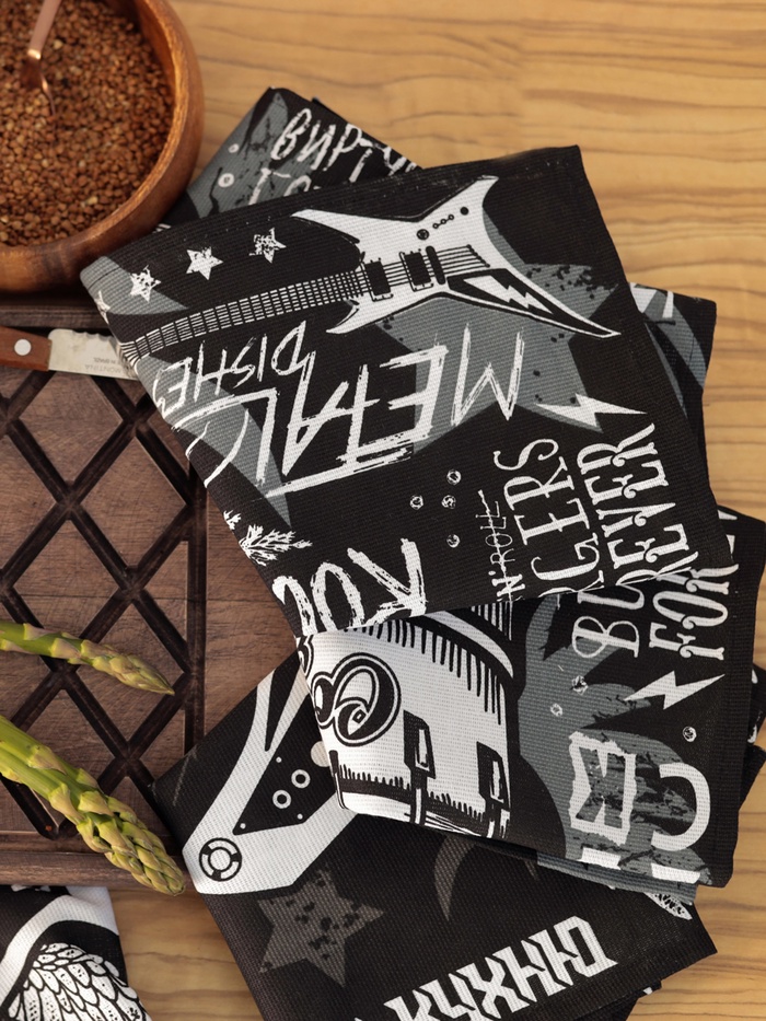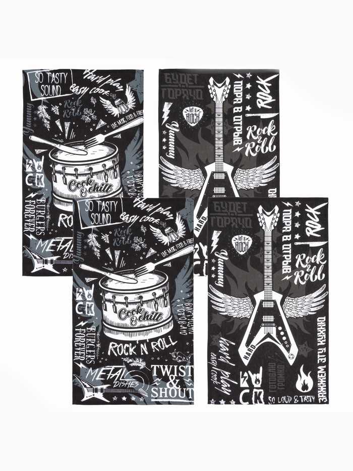 Набор кухонных полотенец Доляна Rock'n'roll, 35×60 см-4 шт., 100% хлопок 10 фото
