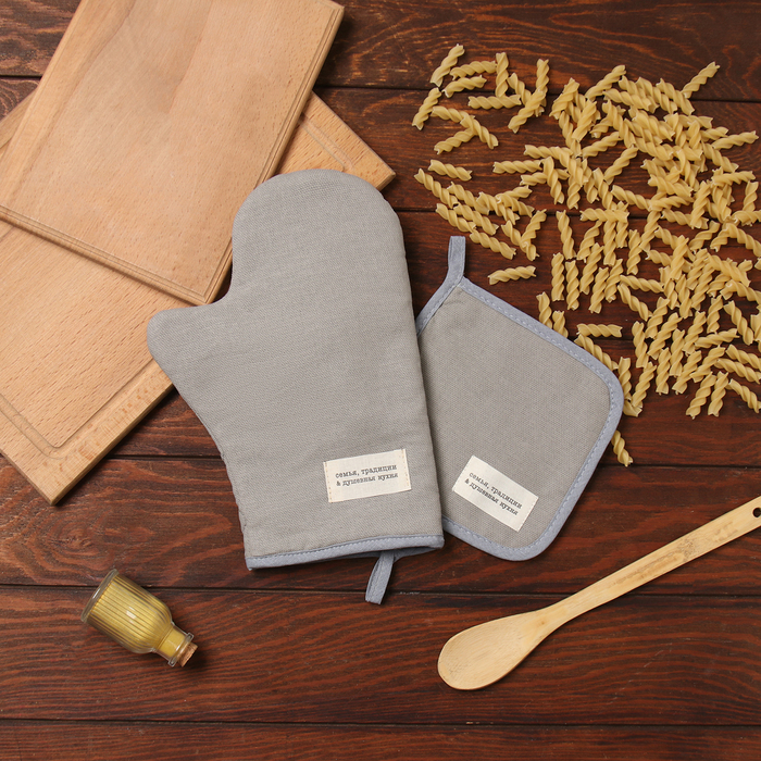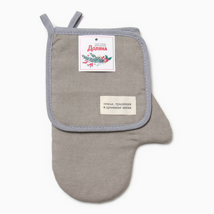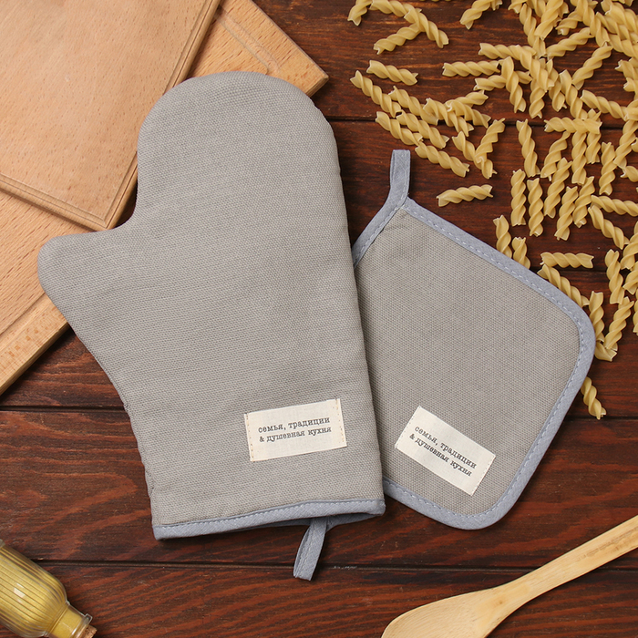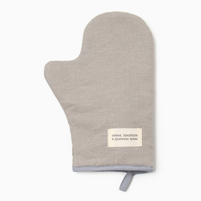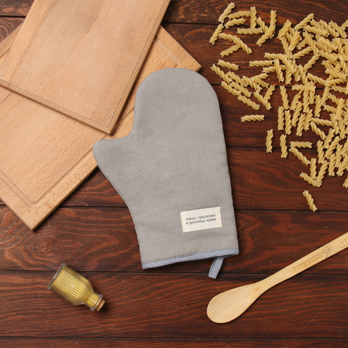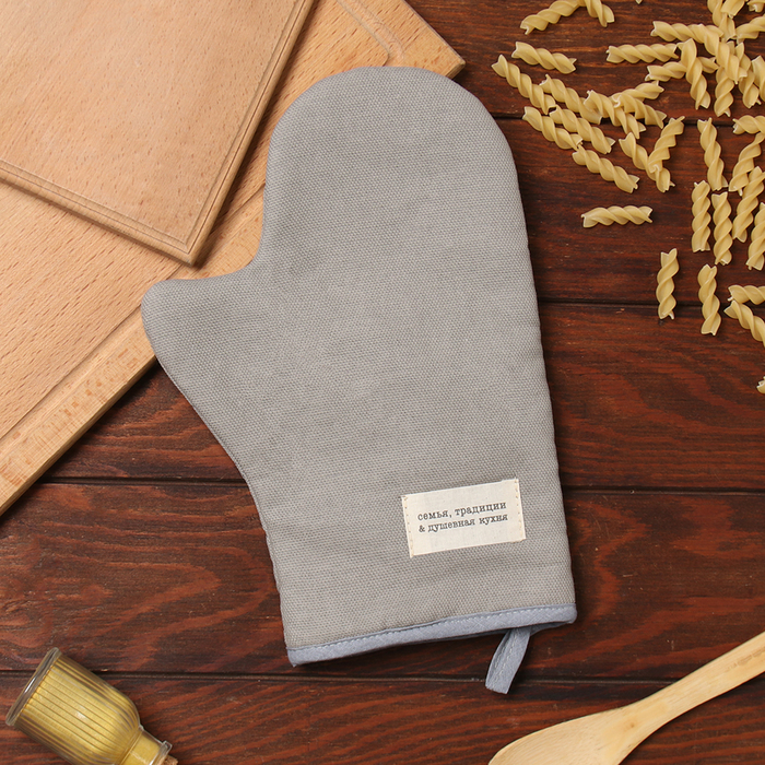 Варежка-прихватка «Доляна. Душевная кухня», серый, 20×28 см, рогожка, 100% хлопок 5 фото