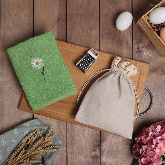 Набор подарочный «Этель» Chamomile, полотенце 30×60 см, тёрка 7.7×3.7 см 9 фото