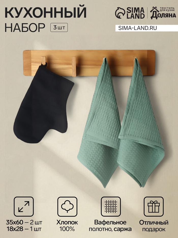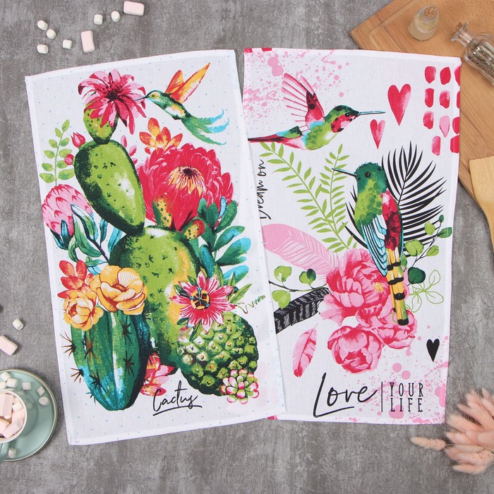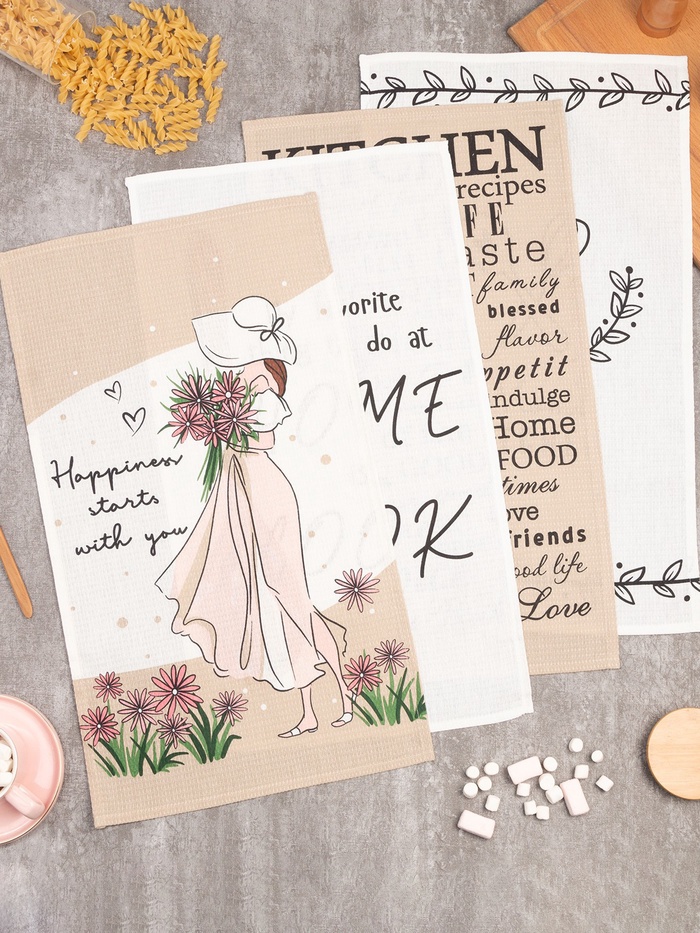 Набор кухонных полотенец «Доляна» Hello spring, 35×60 см -4 шт., 100% хлопок, вафля 160 г/м² 10 фото