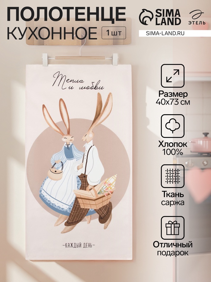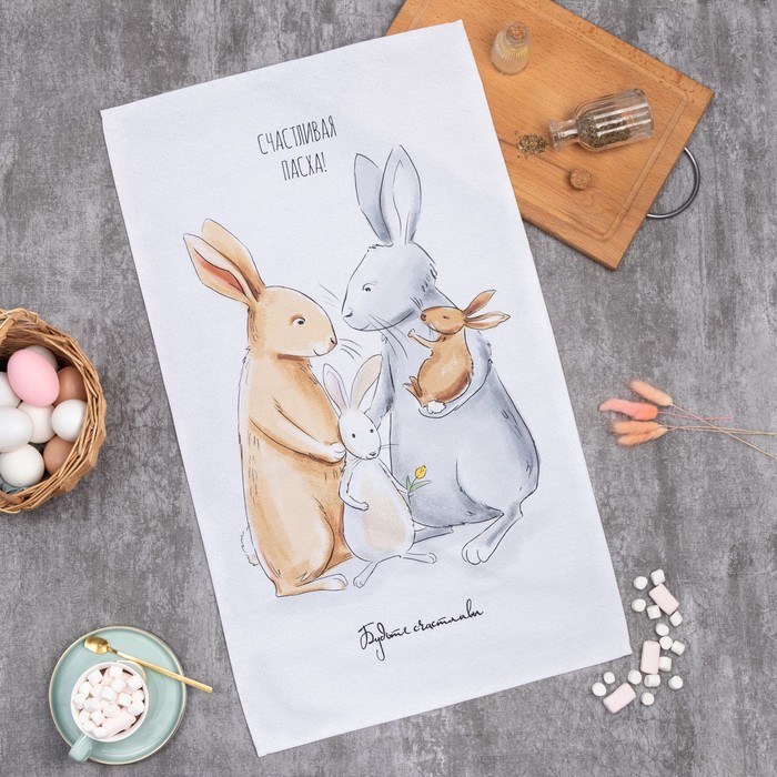 Полотенце Этель «Зайчики» 40×73 см, 100% хлопок, саржа 190 г/м² 5 фото
