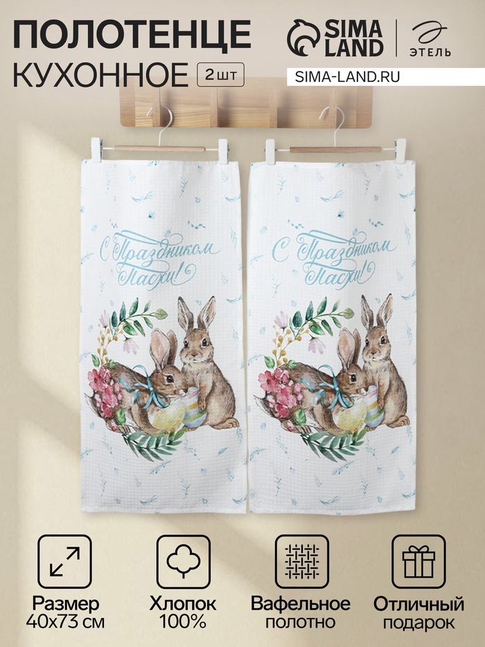 Набор полотенец Этель «С праздником Пасхи», 2 шт., 100% хлопок 10 фото