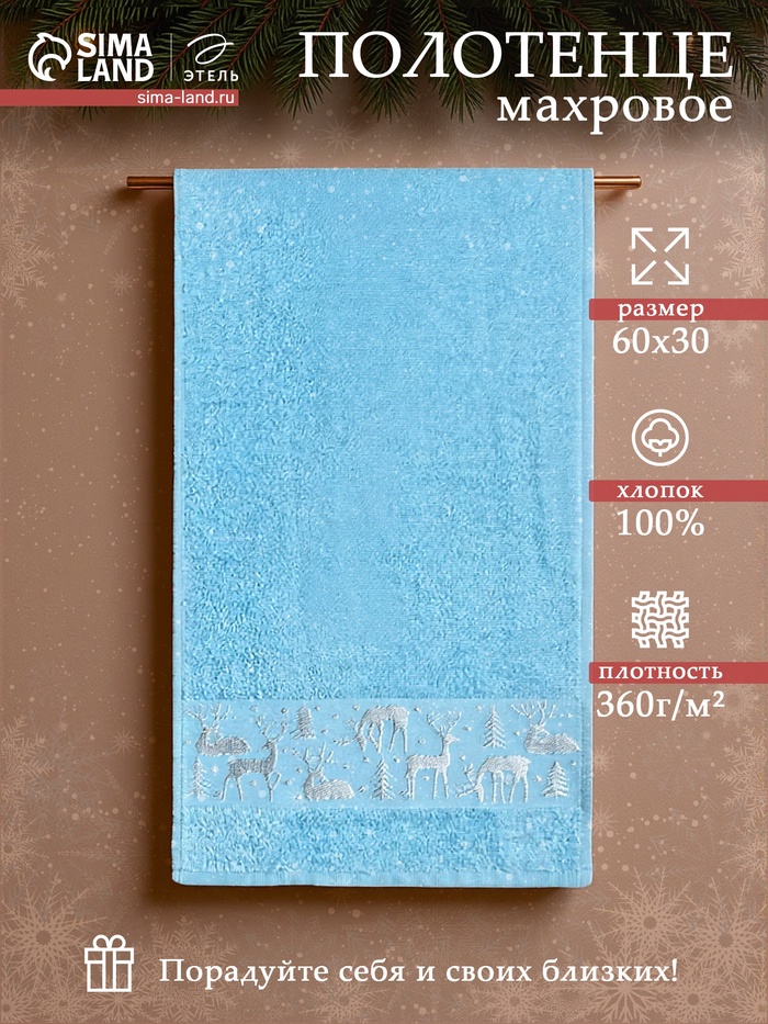 Полотенце новогоднее махровое «Этель. Олени», 30×60 см, хлопок 100% 5 фото