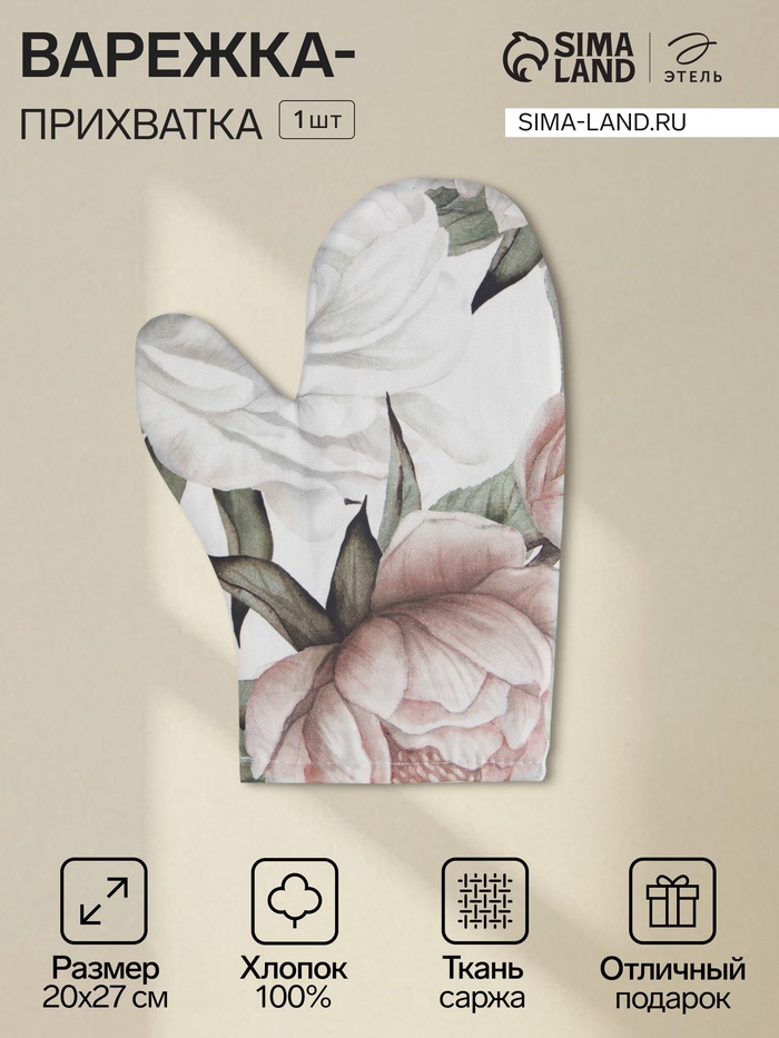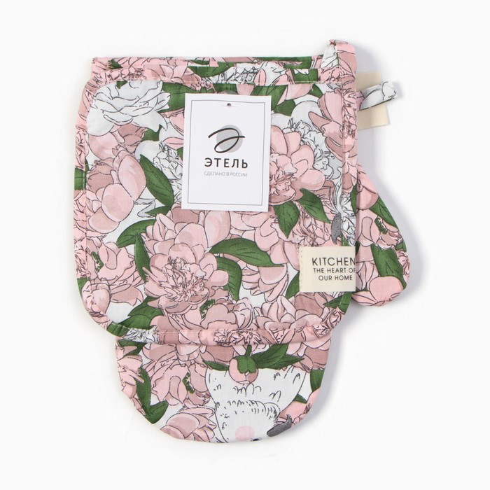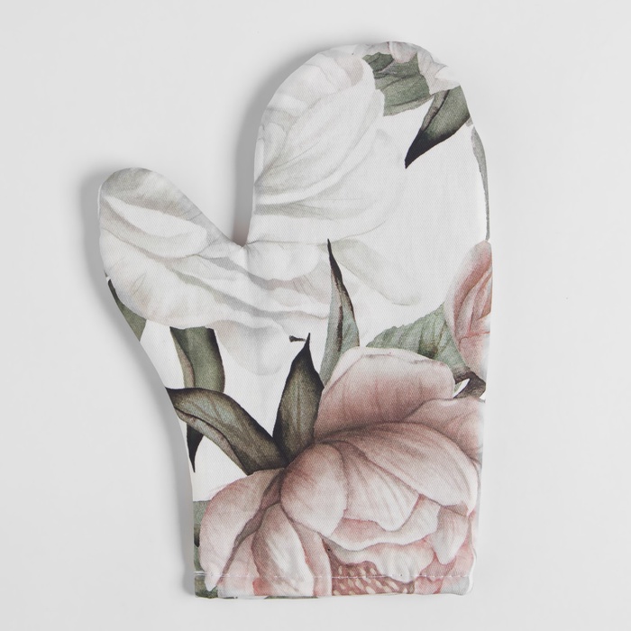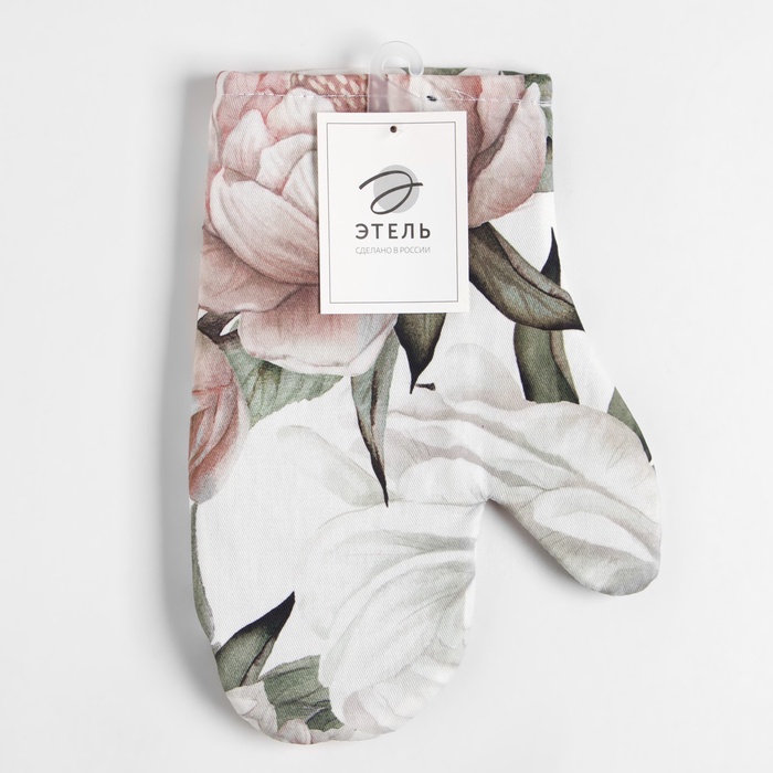 Прихватка-варежка «Этель. Пионы», 20×27 см, белая, двухсторонняя 6 фото