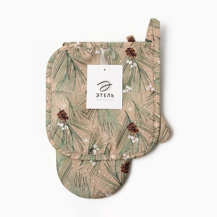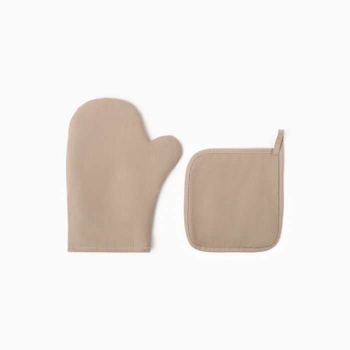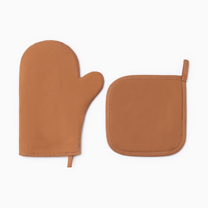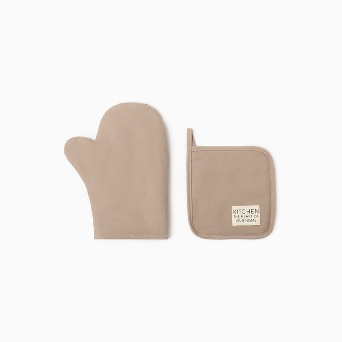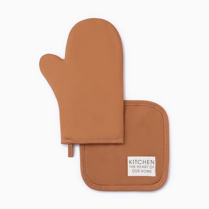 Набор кухонный Этель Kitchen, цвет. коричневый, варежка-прихватка 18×29 см, прихватка 19×19 см 7 фото
