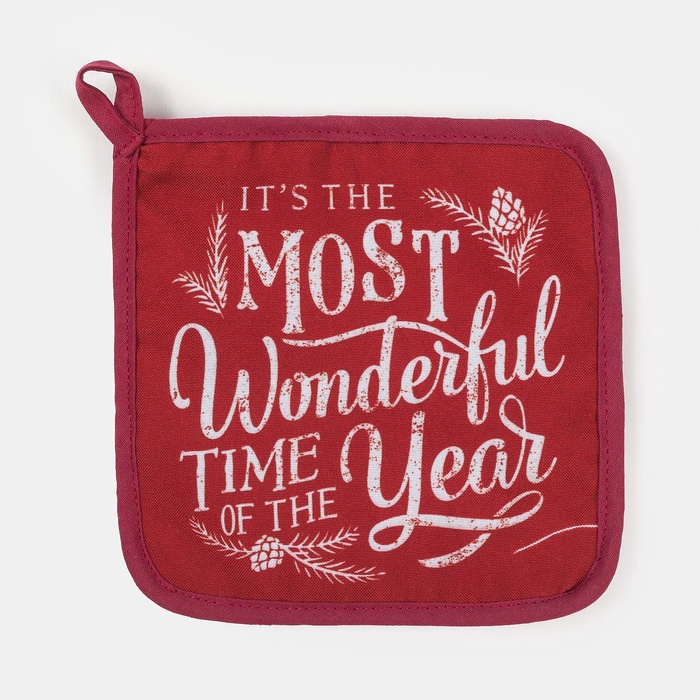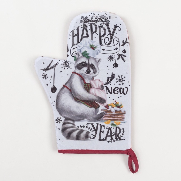 Набор новогодний новогодний кухонный Happy new year: варежка-прихватка 20×28 см, прихватка 17×17 см 7 фото