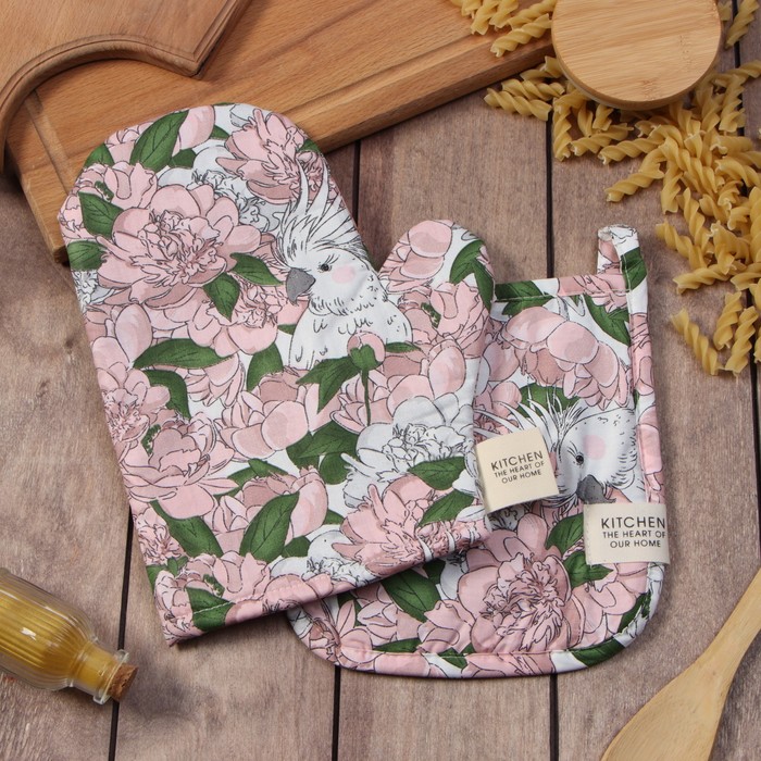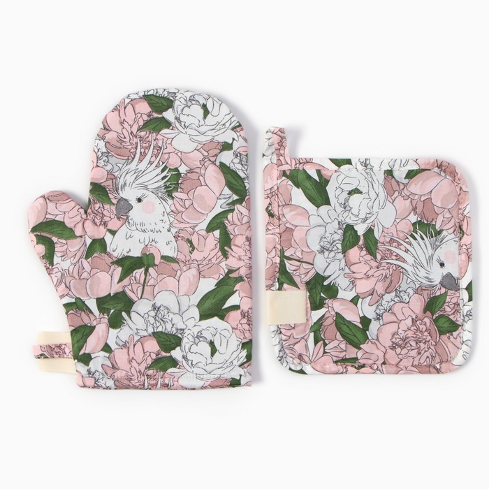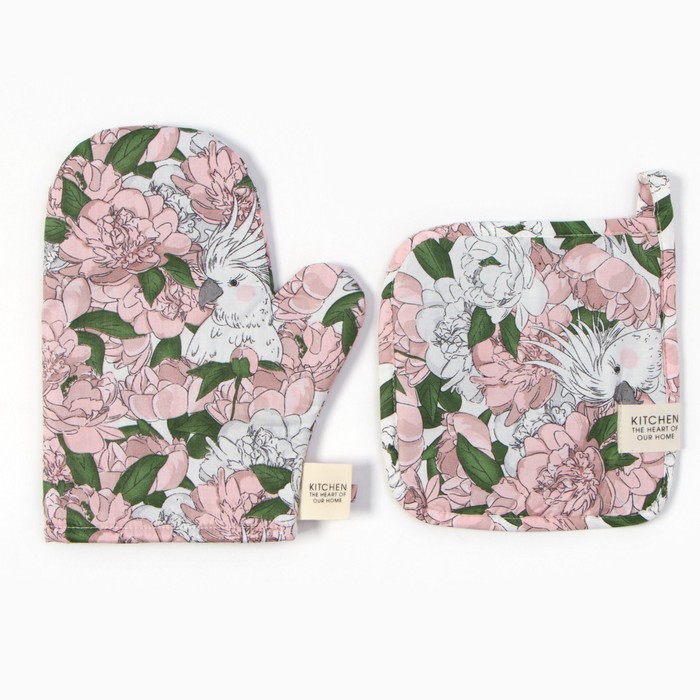 Набор кухонный «Этель. Попугай»: варежка 20×28 см, прихватка 19×19 см, 80% хлопок, 20% п/э 5 фото