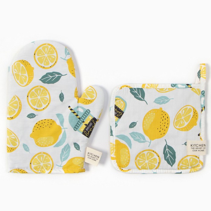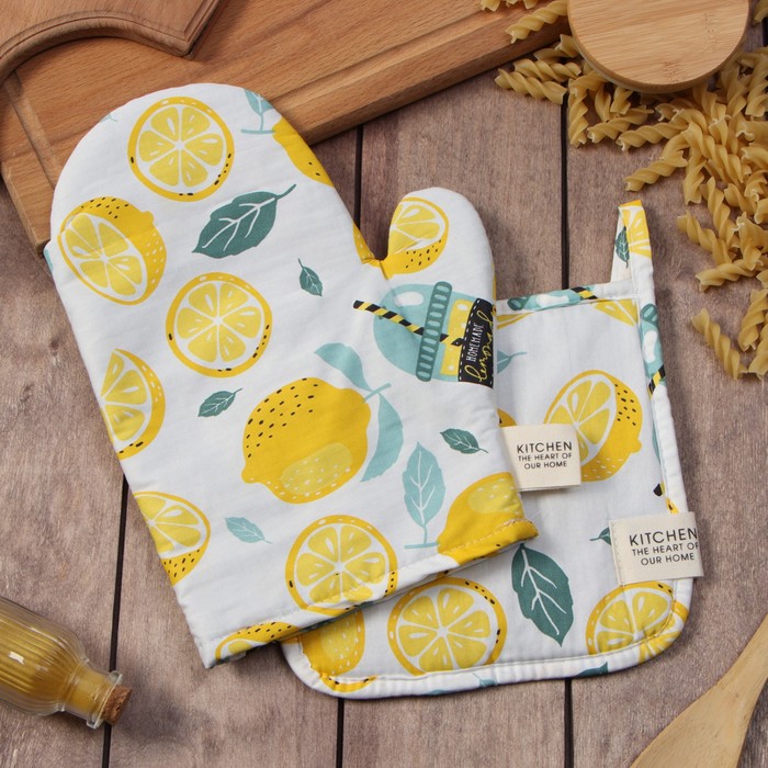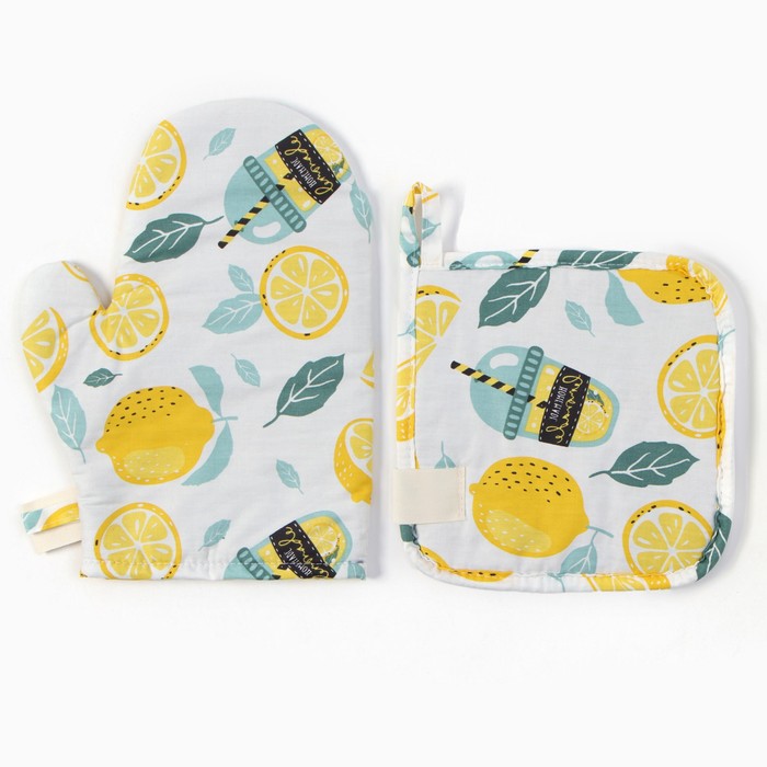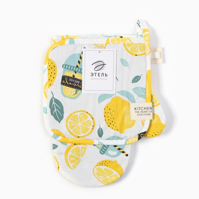 Набор кухонный Этель «Лимонад»: варежка 20×28 см, прихватка 19×19 см, хлопок 6 фото