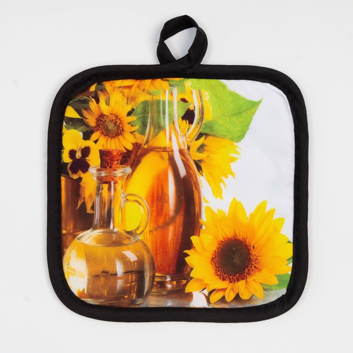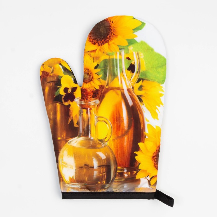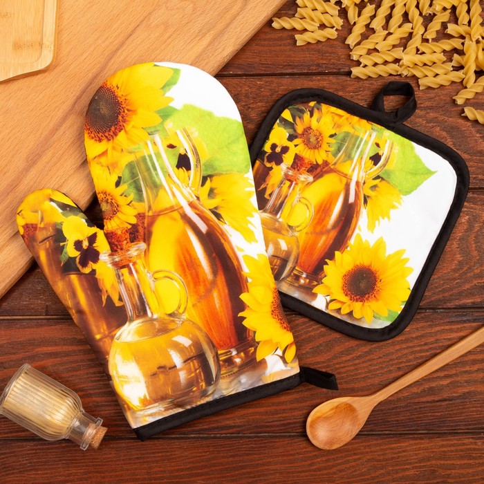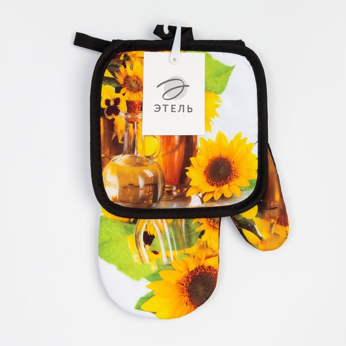 Кухонный набор 2 прихватки Этель «Подсолнухи», прихватка 17×17 см, варежка 24×16 см, 100% п/э 6 фото
