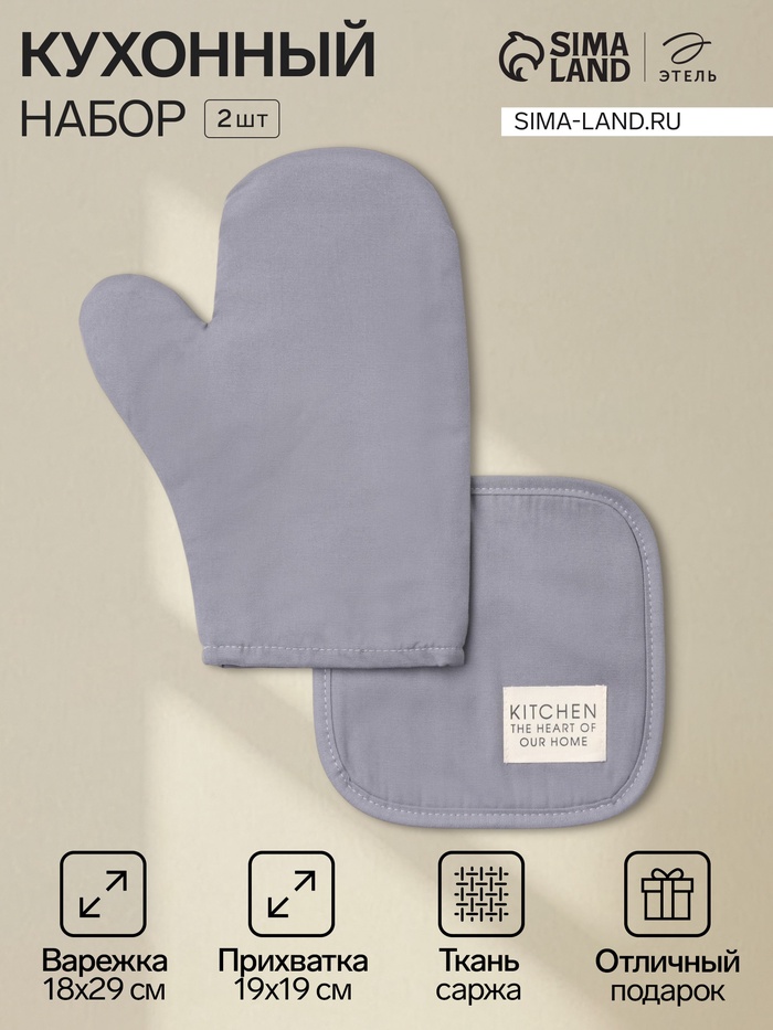 Набор кухонный Этель Calm: варежка 20×27 см, прихватка 19×19 см, 100% хлопок, 250 г/м² 7 фото