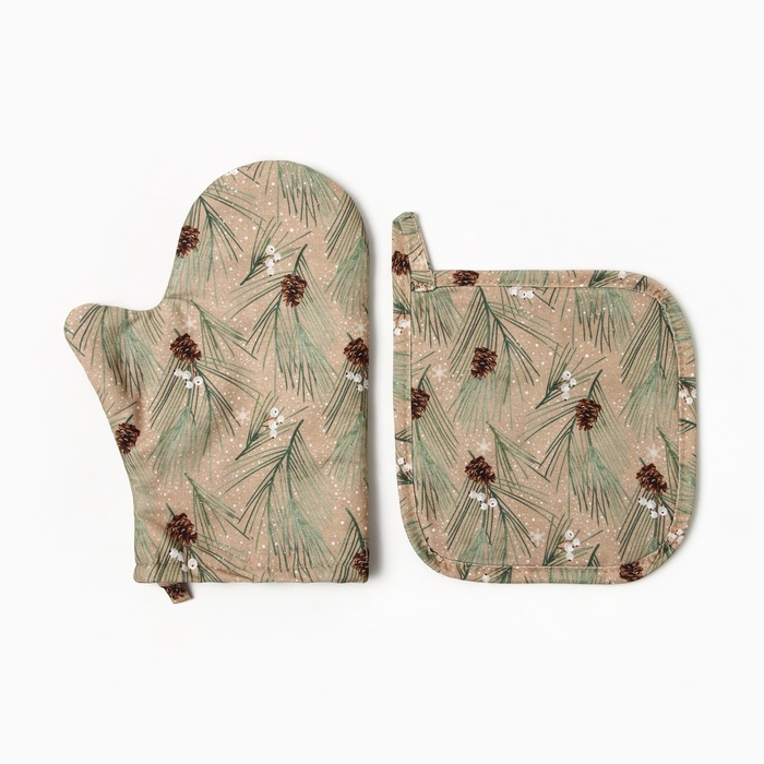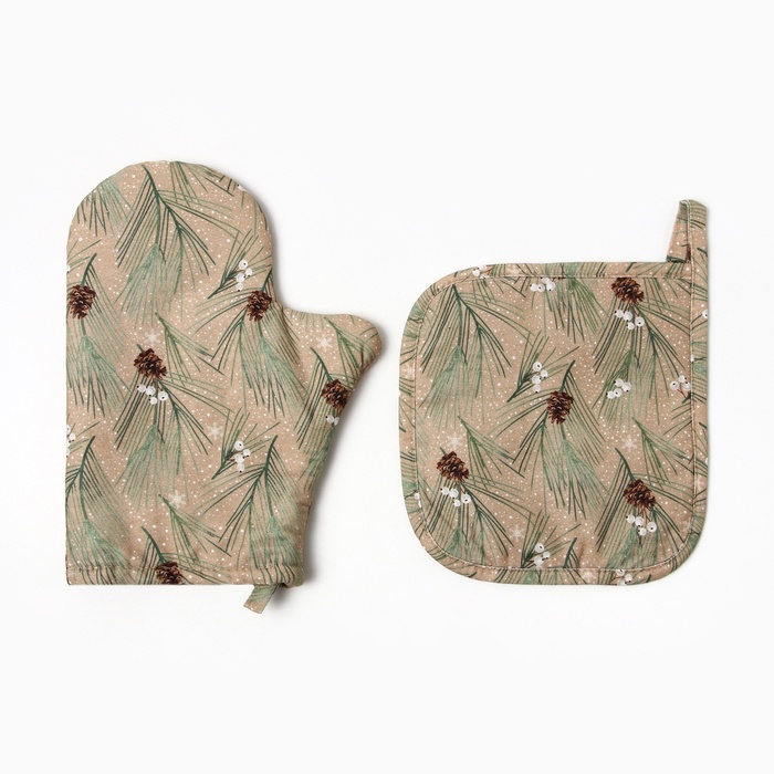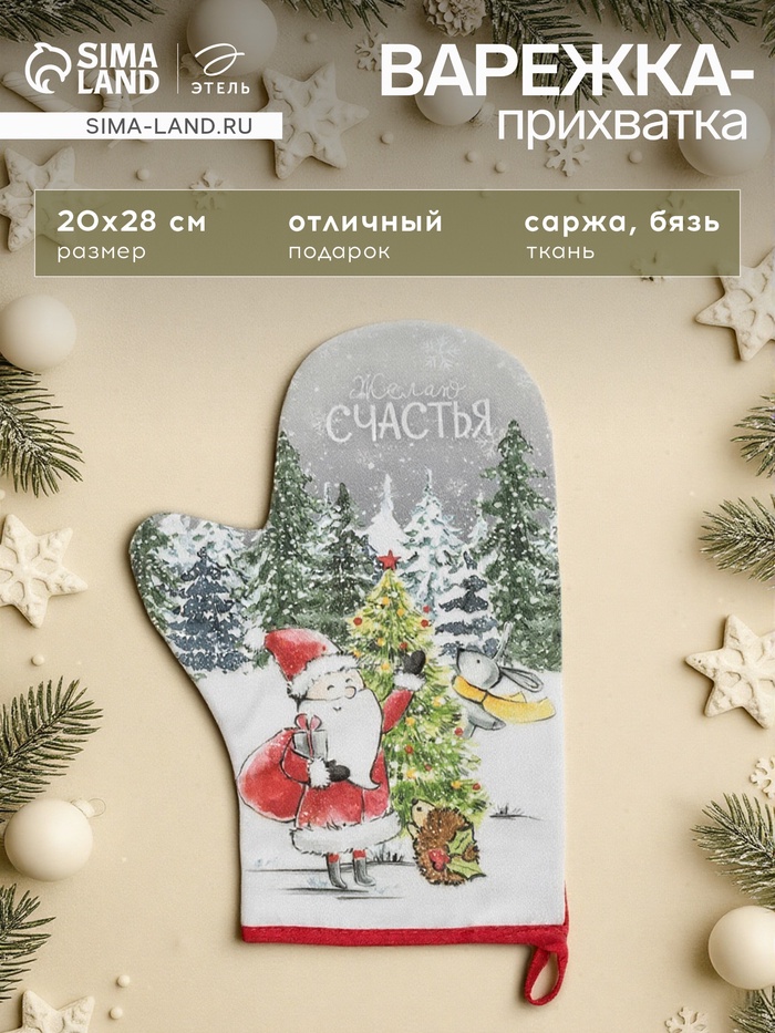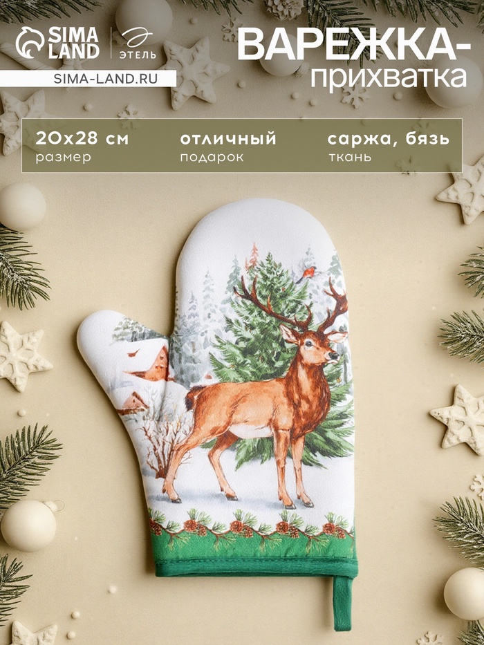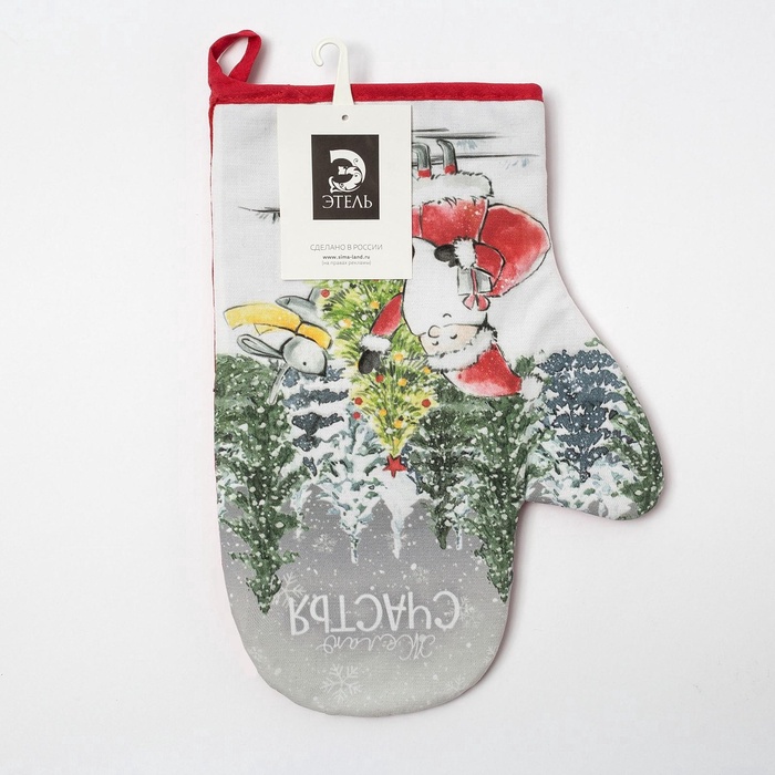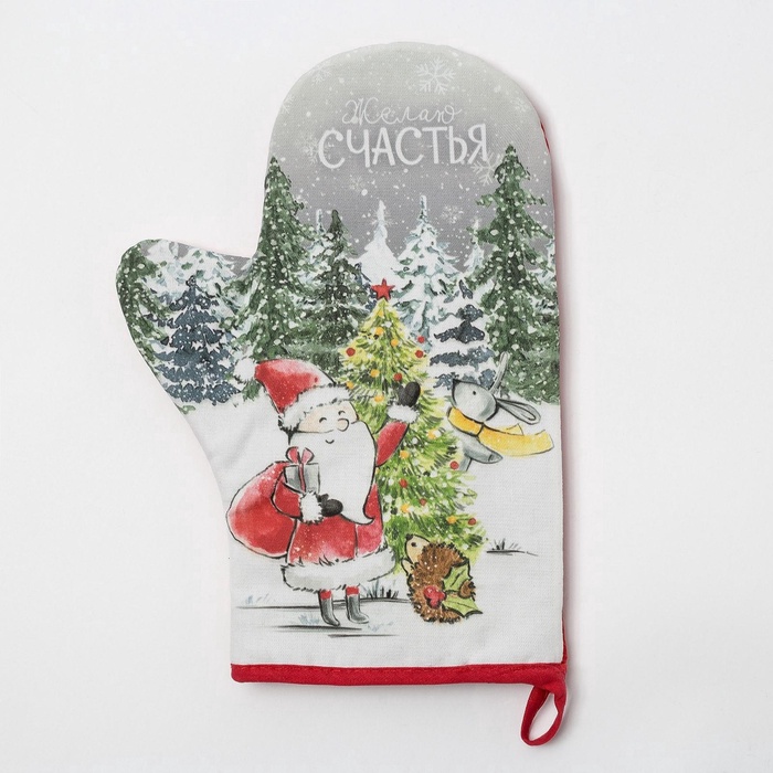 Варежка-прихватка «Новогодний лес» 20×28 см, саржа, 100% х/л, ватин 250 г/м² 5 фото