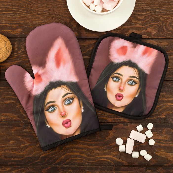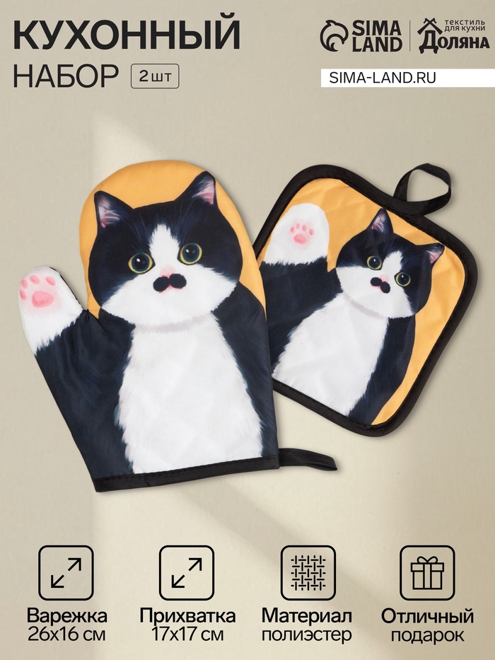 Кухонный набор 2 прихватки Этель Love Life «Пушистая», прихватка 17×17 см, варежка 26×16 см, 100% п/э 6 фото