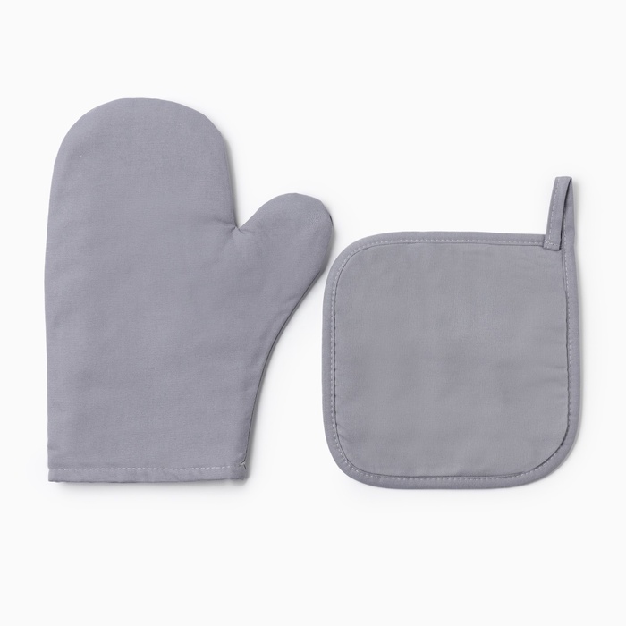 Кухонный набор «Доляна», варежка, прихватка, 100% пэ, рогожка 200 г/м, белый/серый 3 фото